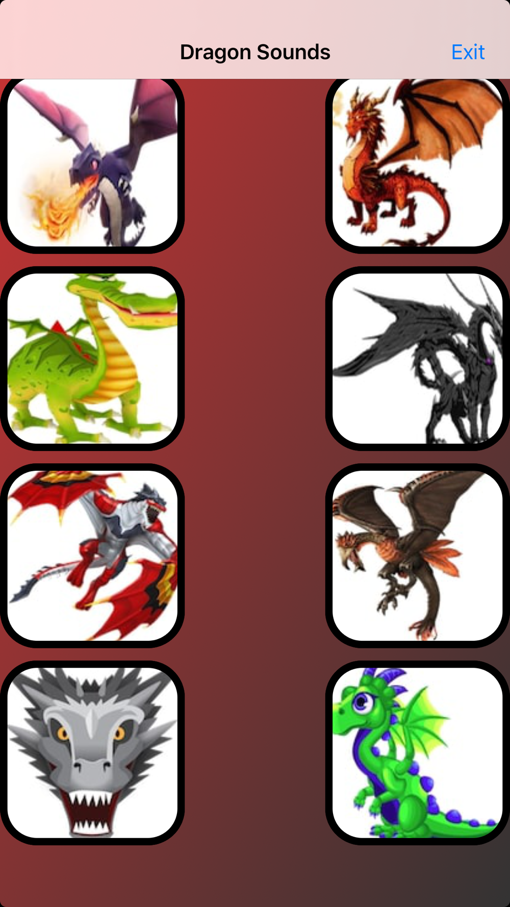 Dragon Sounds app contains many good Dragon sound and many different Dragons are there.