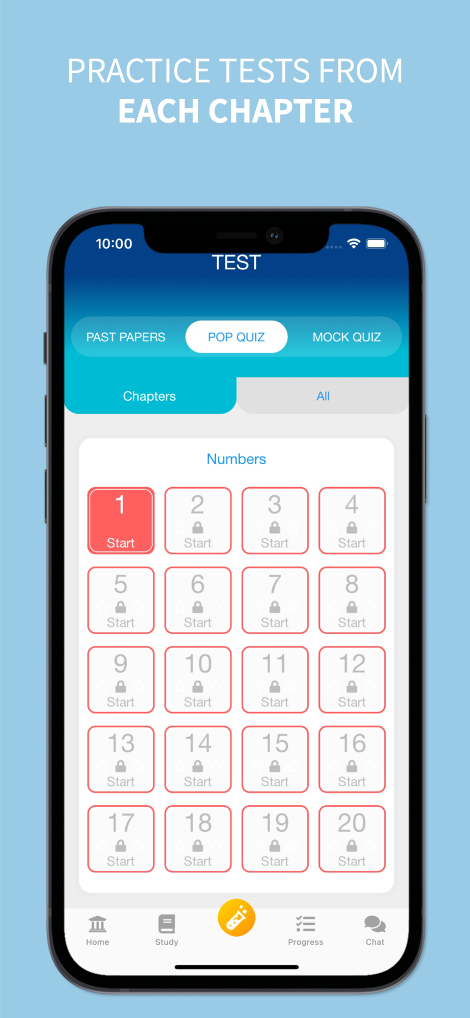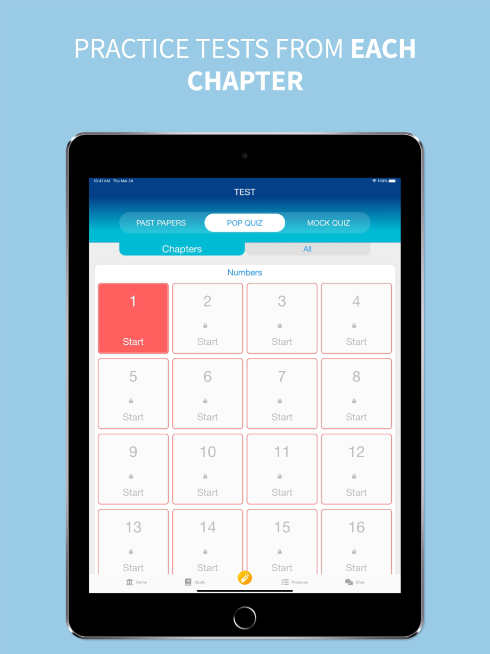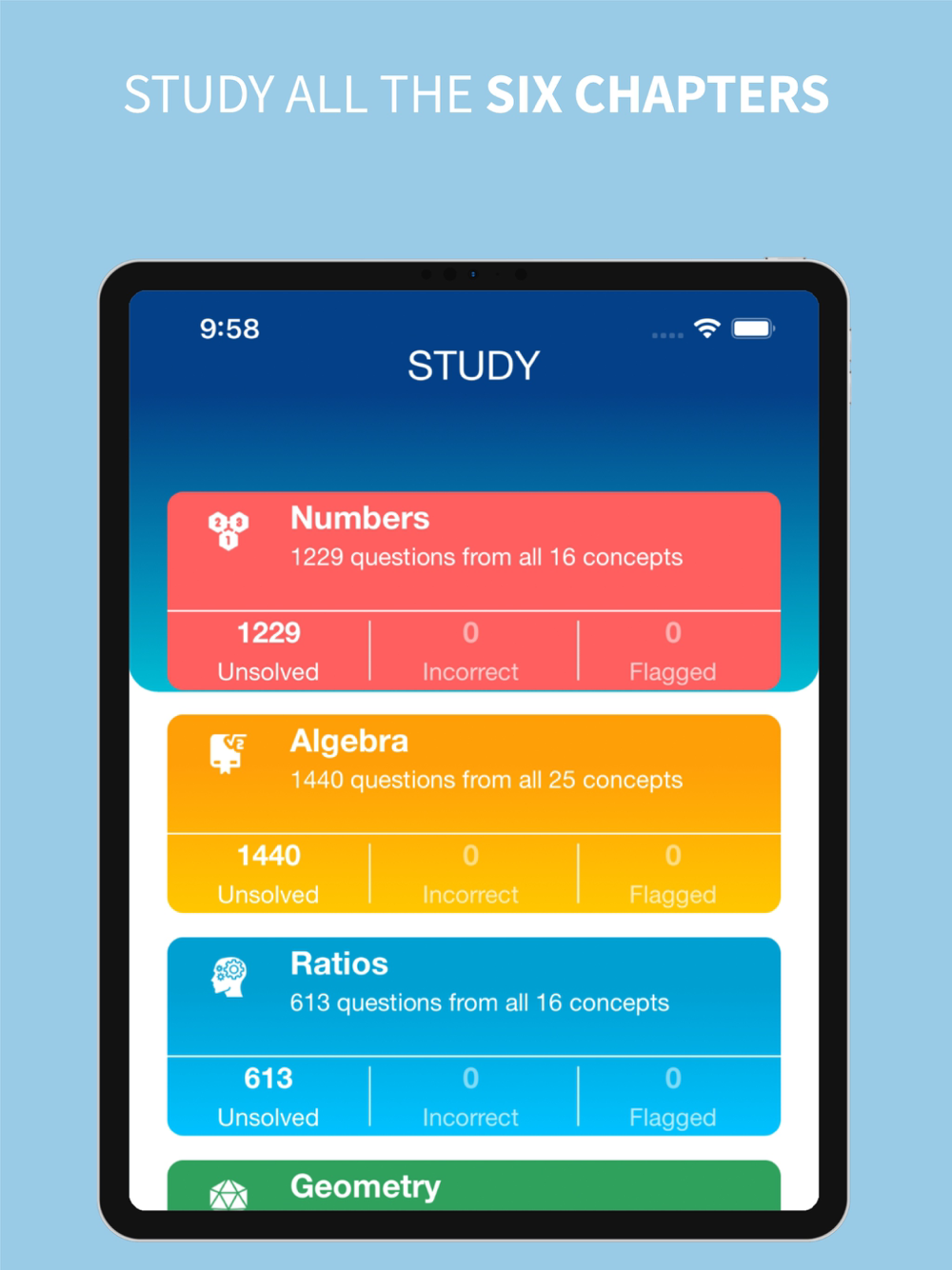 The app also helps you to monitor your progress and scores and shows your improvement by topic so that you can focus more or less on topics as required.