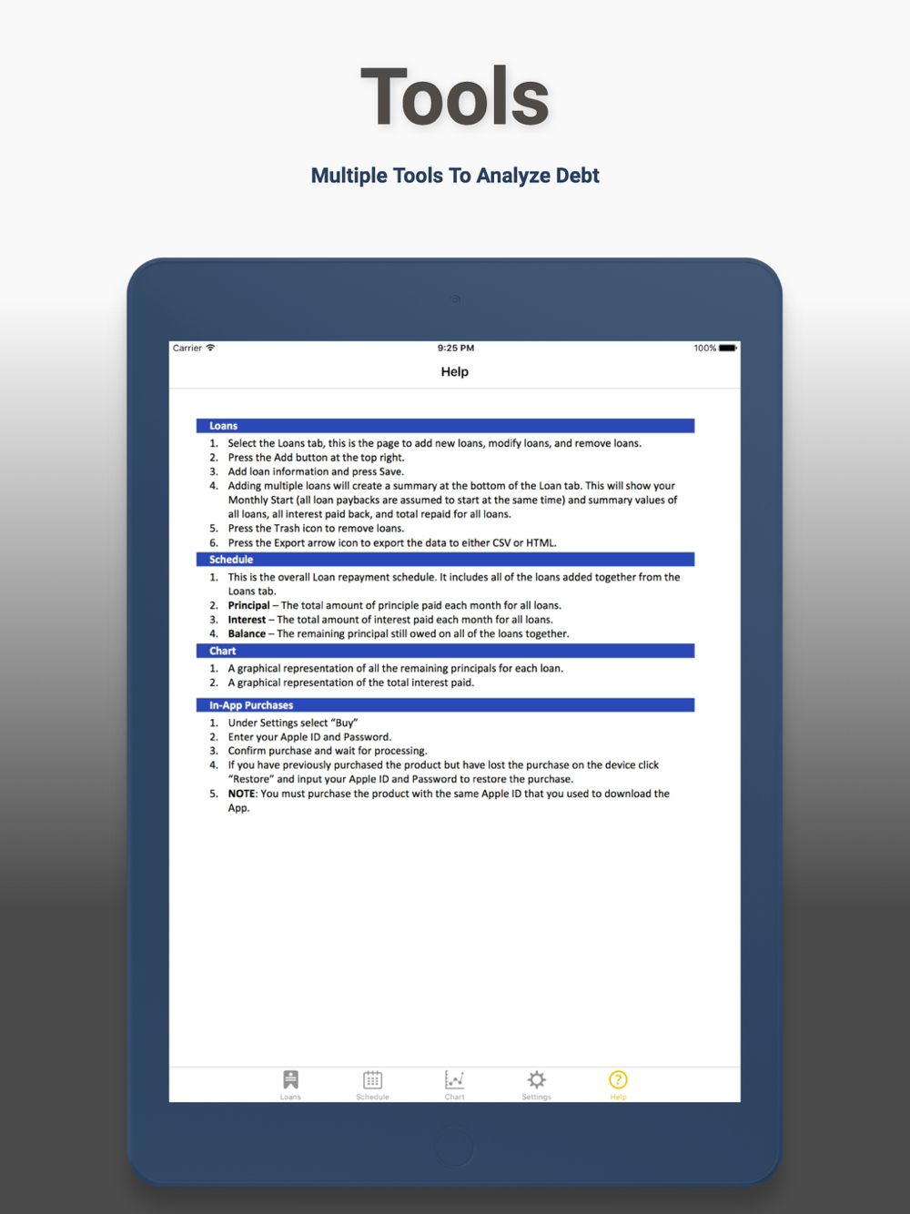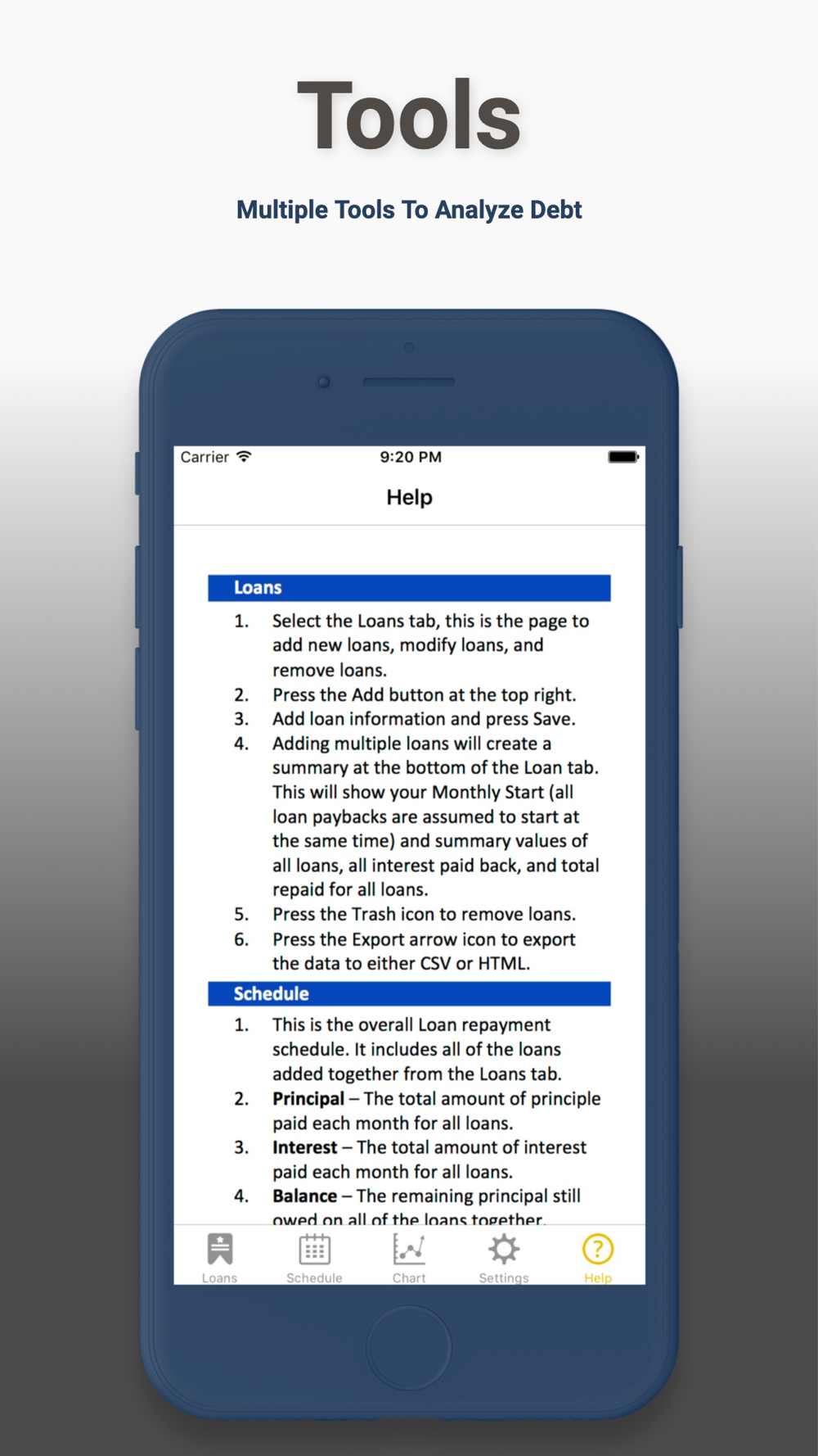 • Graphical analysis tool of loan life.