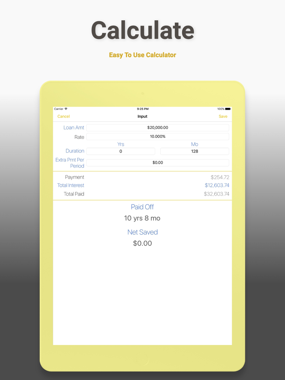 • Early payoff calculations.
