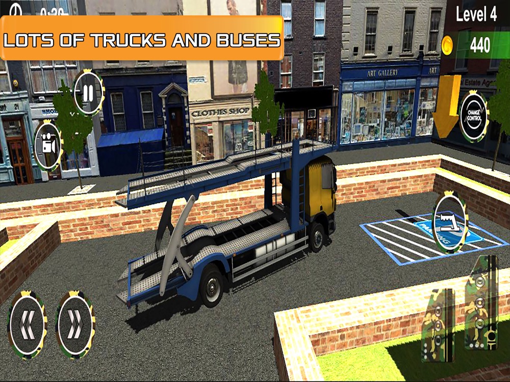 Are you ready to handle the most difficult Heavy Traffic Vehicles (HTV)? Accept the most interesting heavy duty automobiles driving and parking challenge that will amaze and entertain you at the same time. Become a heavy duty truck driver in 3D Truck Parking Simulator: HTV Driving Test. The game simulates various parking situations that you may encounter in the career of a real trucker. In this 3D truck parking game you can change the overall view of the truck's position in different 3D optic angles. Change the view to bird view to have a good idea how much space is left when you park your truck as a legendary driver king in this3D Truck Parking Simulator: HTV Driving Test truck parking game. Control multiple truck, trailers, buses, army vehicles with a steering wheel, acceleration and brake pedal. Steer your trucks into the right parking spot, put the gear into park and round up your mission as a truck driver in this 3D truck parking game.