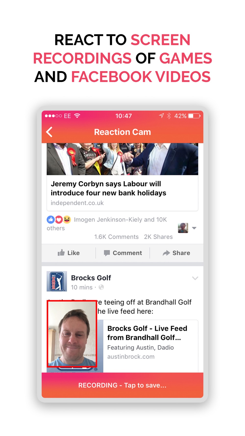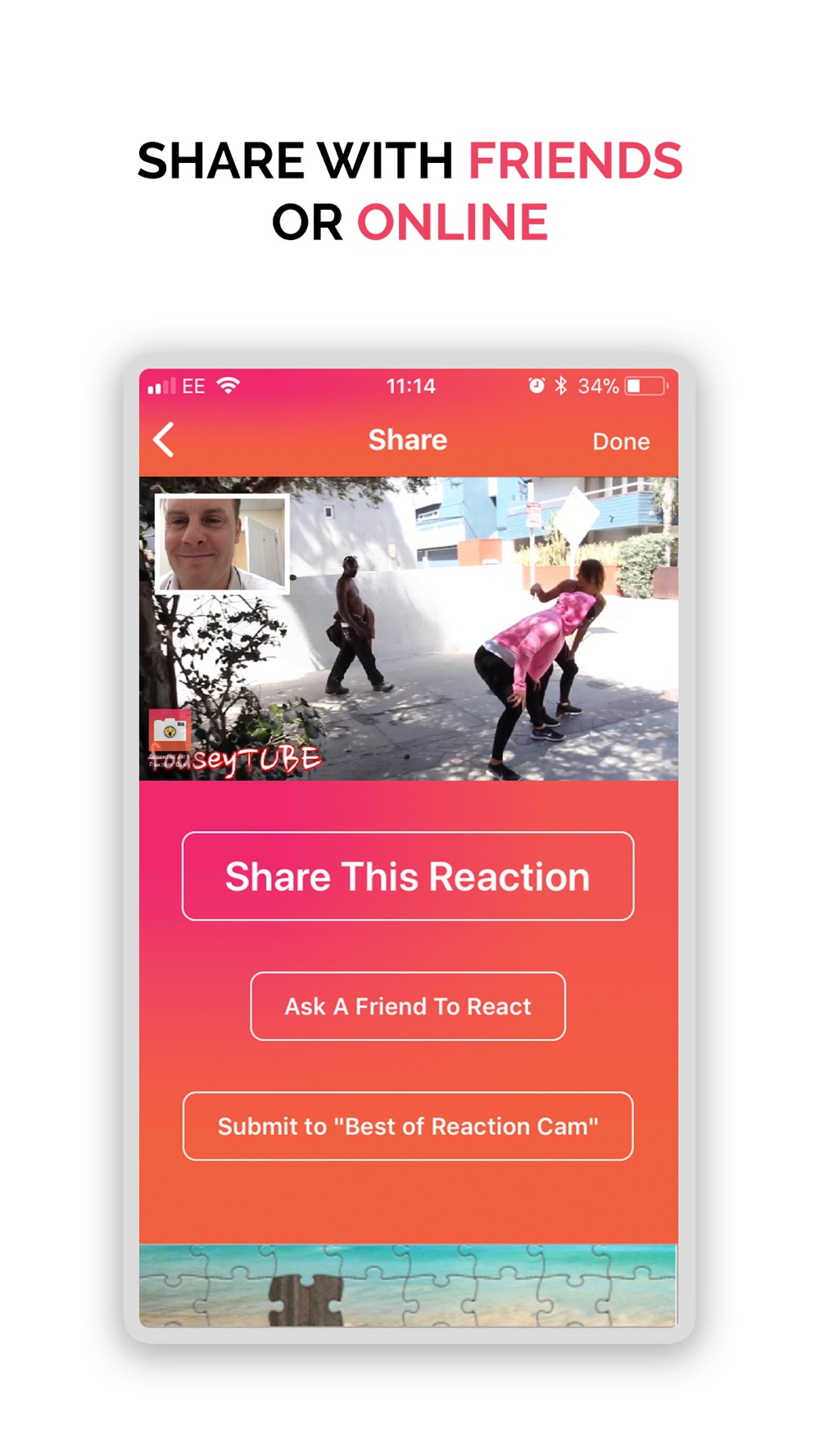 Film professional Reaction Videos and Reaction VLOGS on-the-go with the AWESOME and FREE Reaction Cam App!! Get in on the #Reaction-Action and actually SEE how your friends react to the Youtube videos; Facebook pictures; and the websites that you SEND them!!! Reply to the MANY not the few with a UNIQUE way to interact with ALL your favorite social media platforms with this REVOLUTIONARY new App that makes social media even more sociable!!