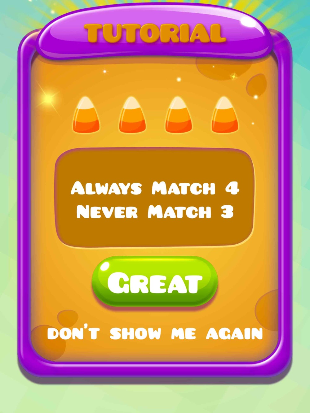 Что может стать ударом для нового геймплея: 4 или более конфеты! Не соответствует 3!