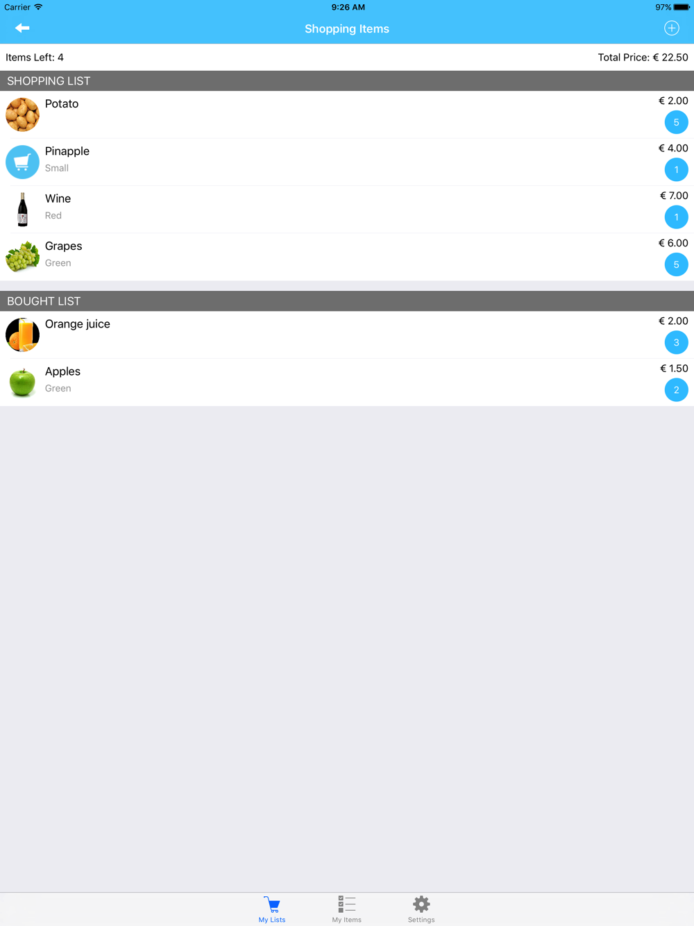 You have sent your husband to supermarket and forgot to add an item to the shopping list? Not a problem any more! Just open the ProShoppingList on your device, log in to your family account and add new item to the list and all the devices that are logged in with the same account will be update in real time. So now you can manage your shopping from anywhere.