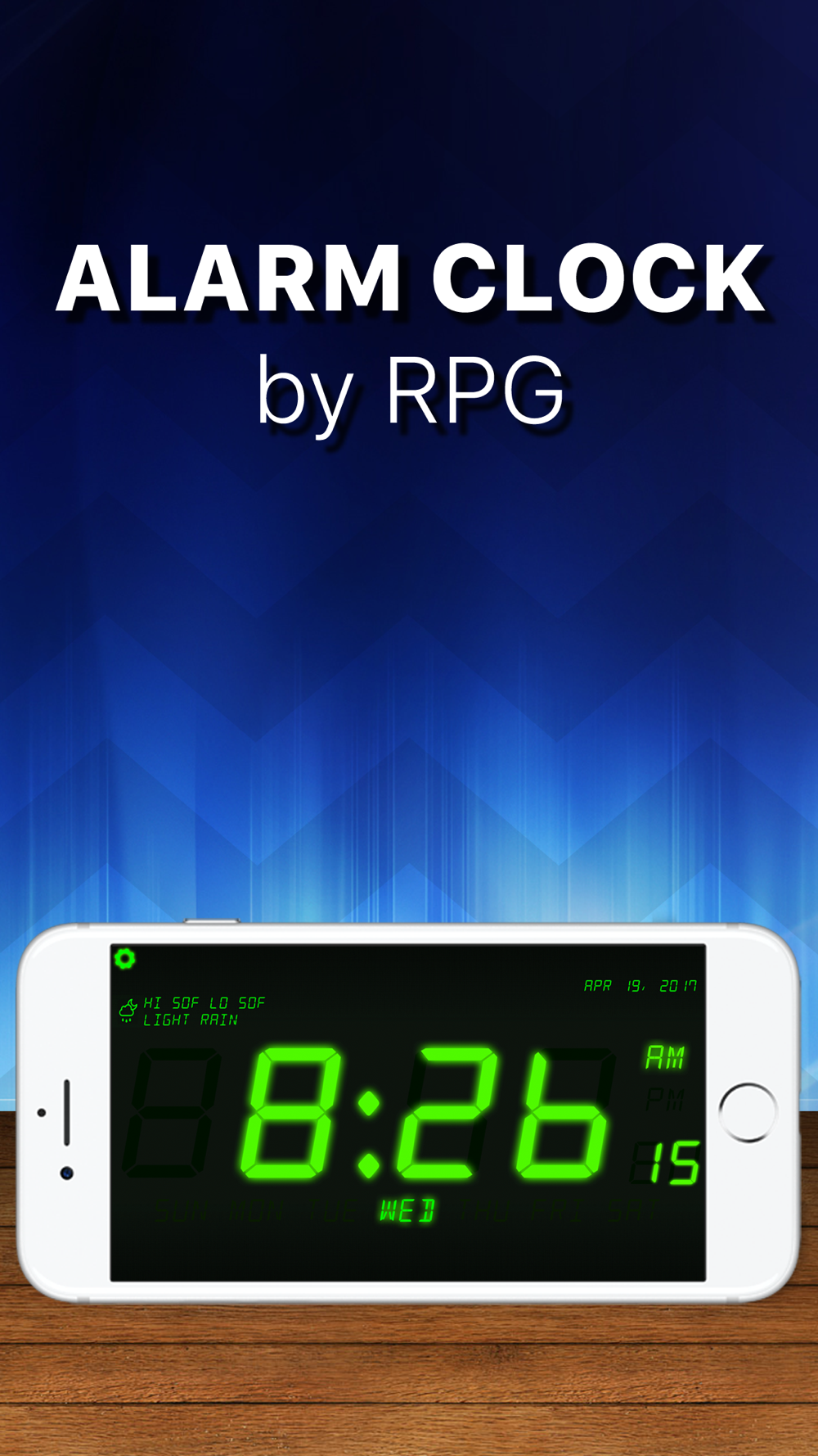 Turn your device into a bedside digital alarm clock. Wake up to your favorite song or use the built in sounds including classic alarm noises, music and kittens!