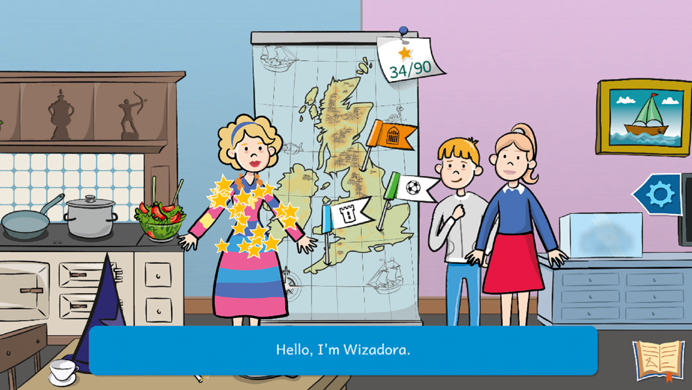 In der kostenlosen Englischlern-App führt "Wizadora", die schusselige Zauberin, Grundschüler zum Englischlernen. In drei Abenteuern mit 56 kurzweiligen Minispielen werden erste Englischkenntnisse trainiert. Kindgerechte Lieder laden zum Mitsingen ein.