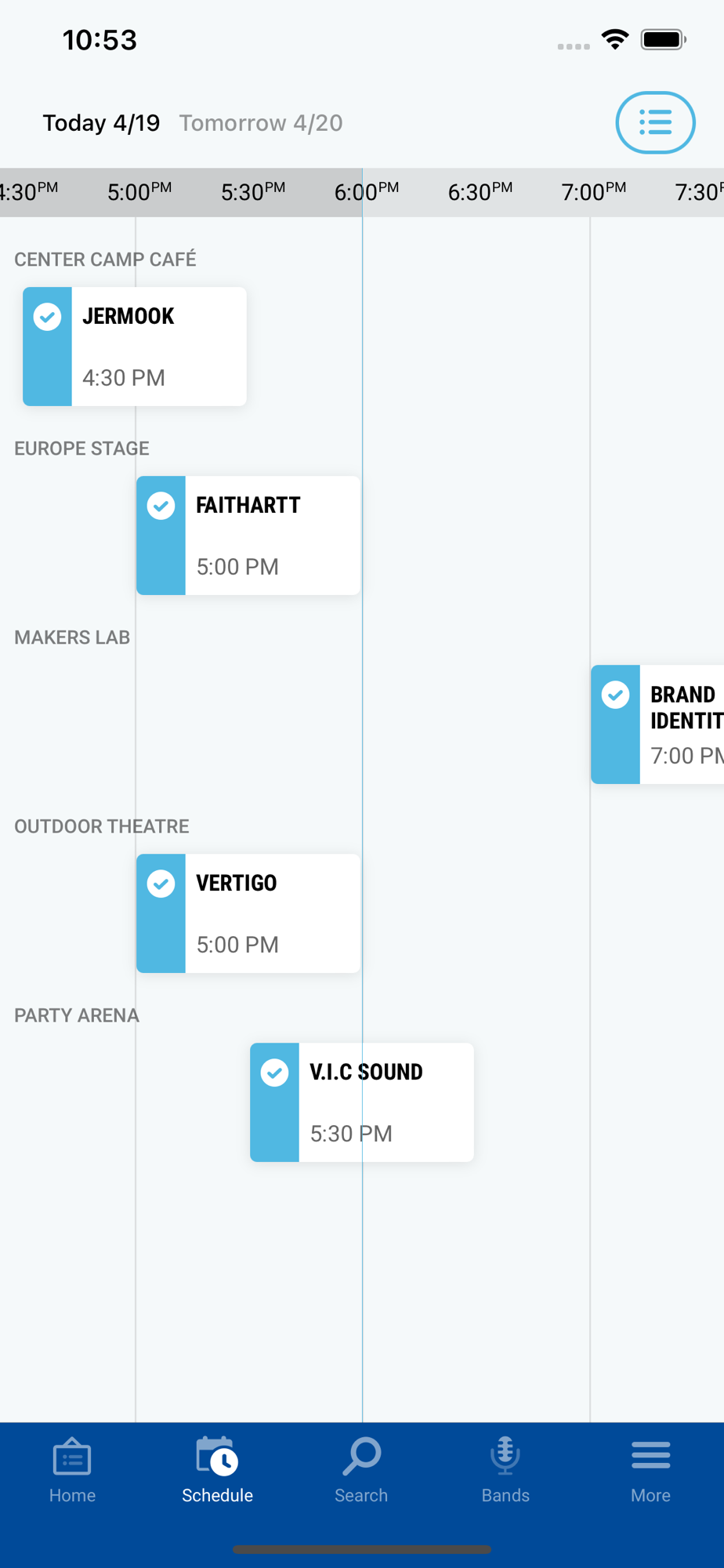 • Add your favourite acts to create your own personalized schedule to get all the information.