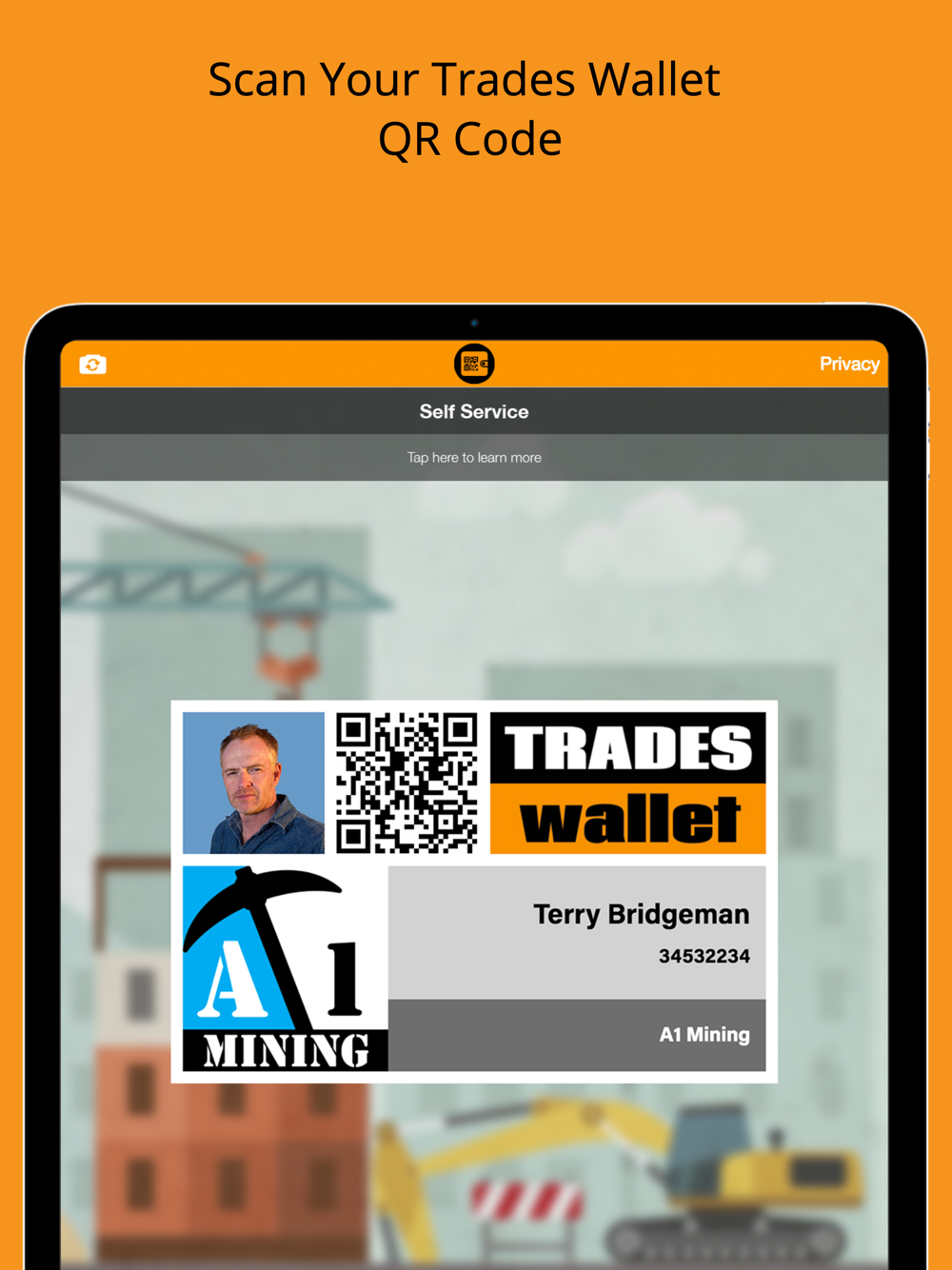 While a Trades Wallet QR Code may look like any other QR Code, your unique Trades Wallet QR Code has been secured such that it can only be scanned using either the Trades Wallet Self Service or Field Scanner mobile applications.