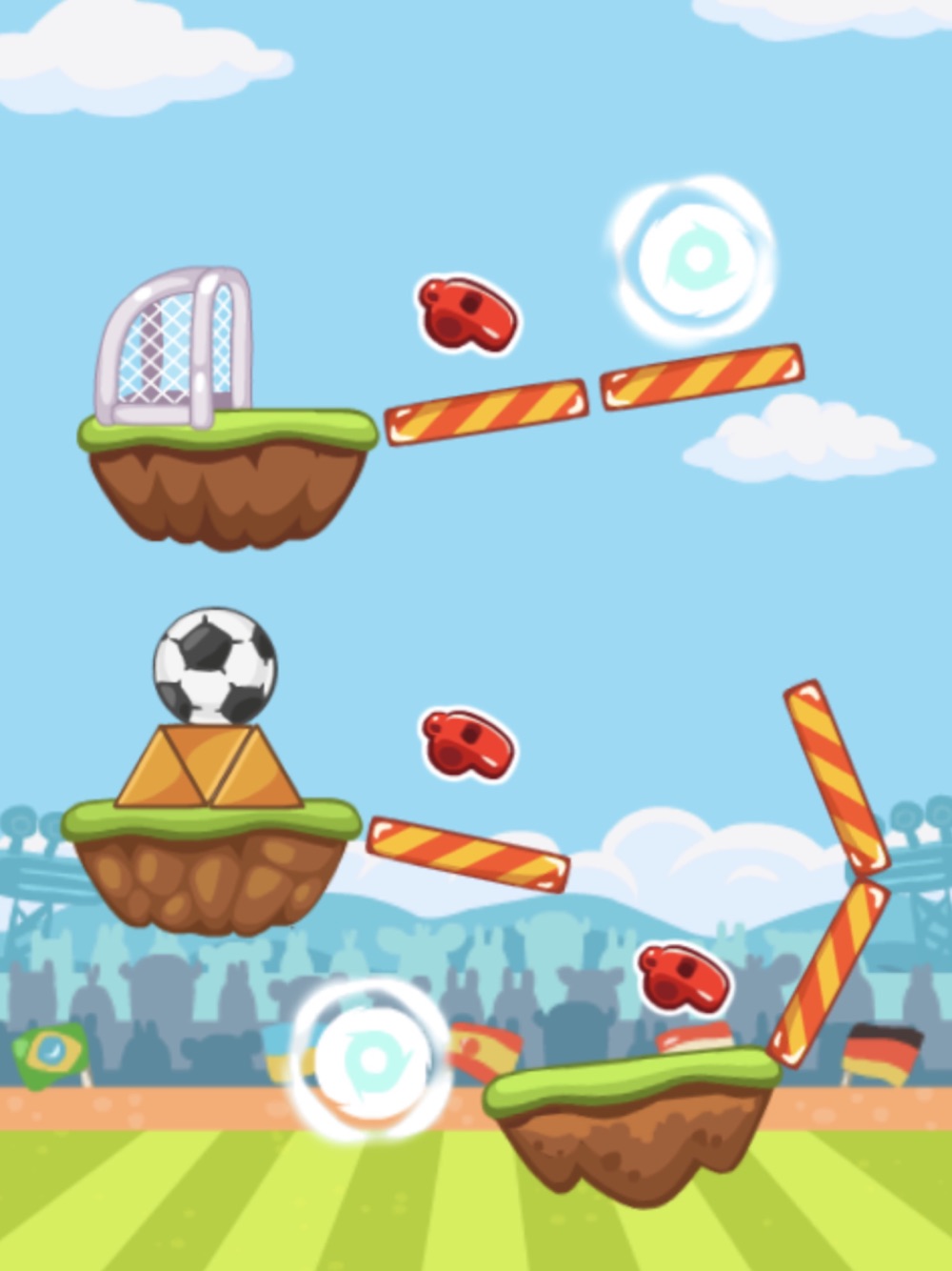 Remove the objects out of the way so that the soccer ball can pass the goal line to score a goal.