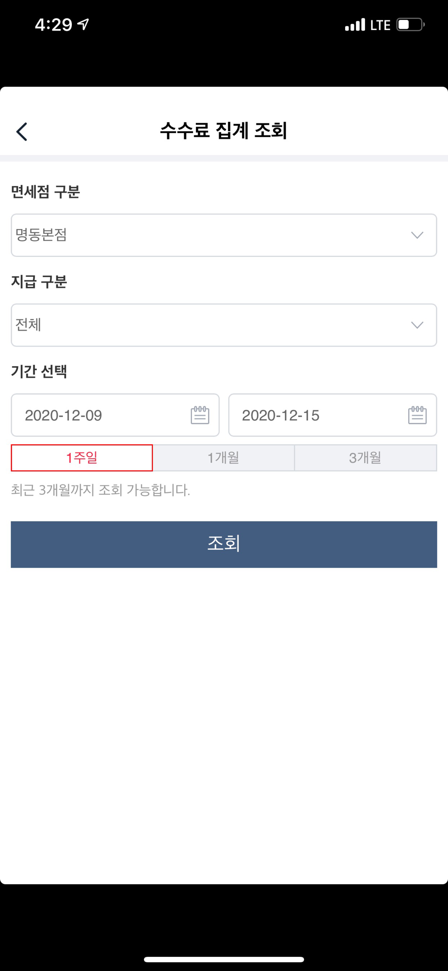 면세점 별 정산된 수수료를 확인할 수 있습니다.