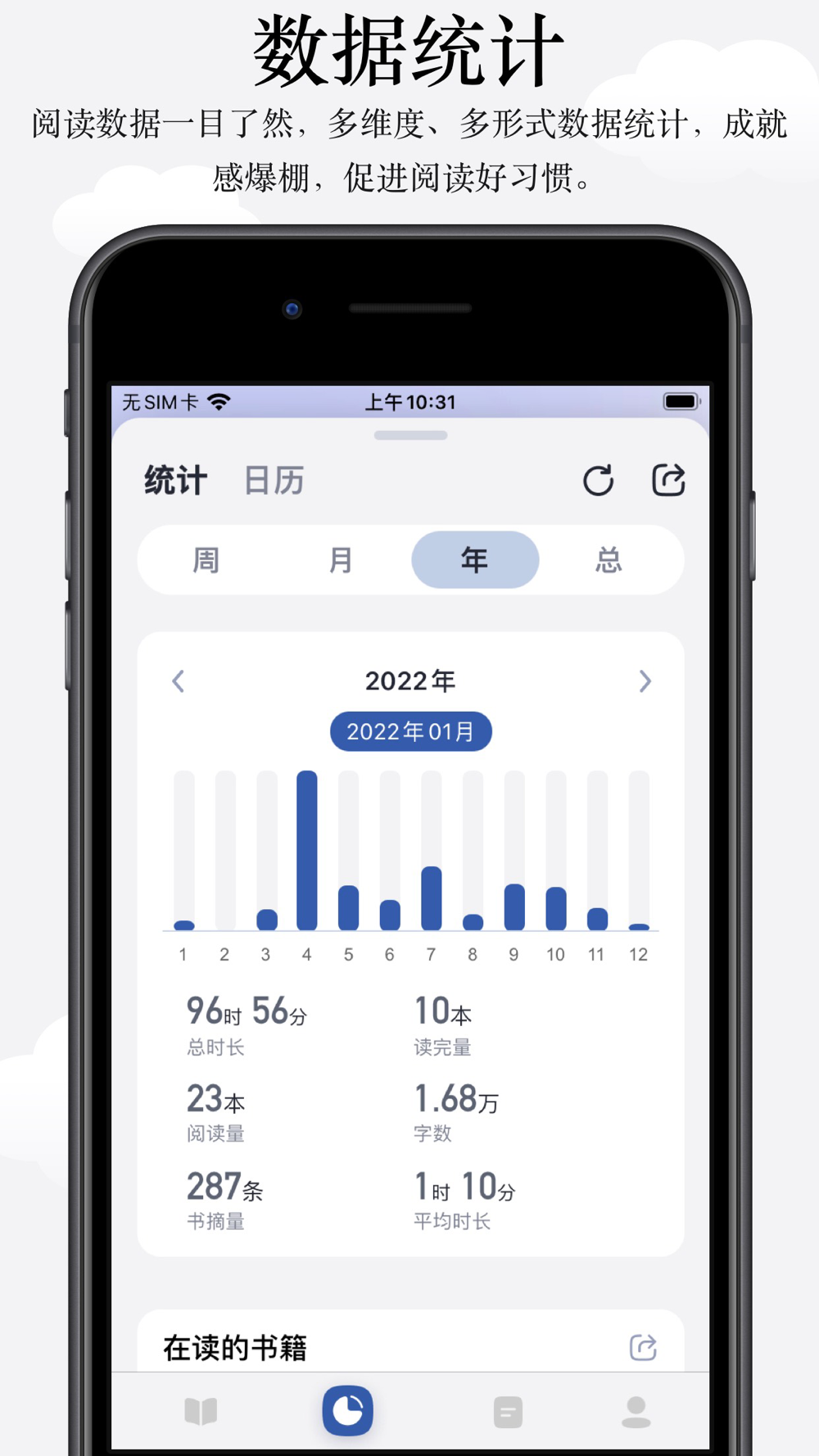 详细记录自己阅读状况,阅读时间、阅读类型、阅读天数、阅读进度、阅读偏好,轻松回溯自己过往的阅读状况;