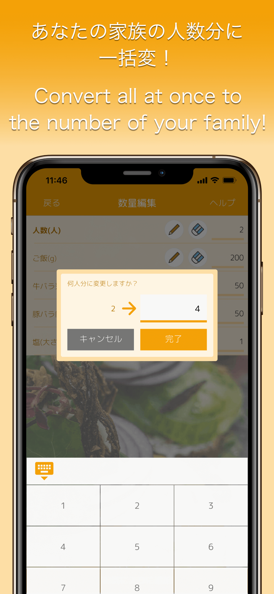 Register the ingredients and amounts written in the recipe and recalculate recipe material to your preferred quantity with one tap.