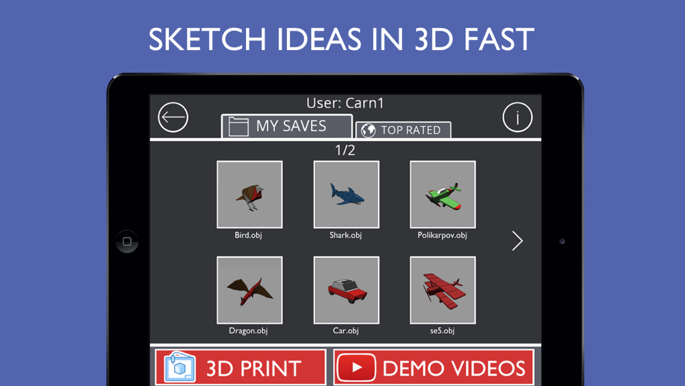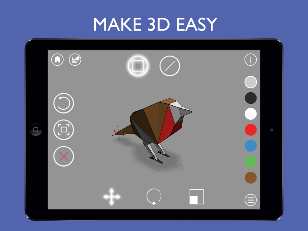 Push ,pull and tap to create 3d models such as chairs and cars to more complex organic models like animals,birds and humans.