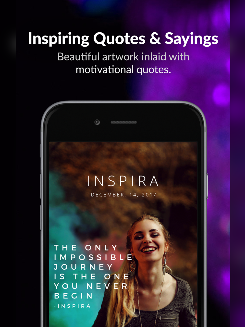Every day at 9am you will be delivered an ‘Inspira’ - a beautiful artwork inlaid with an inspirational thought from a great leader, that doubles as an iPhone Lock Screen Wallpaper. Transform your iPhone into a constant reminder to be great - use it to remain focused and motivated through out the day.