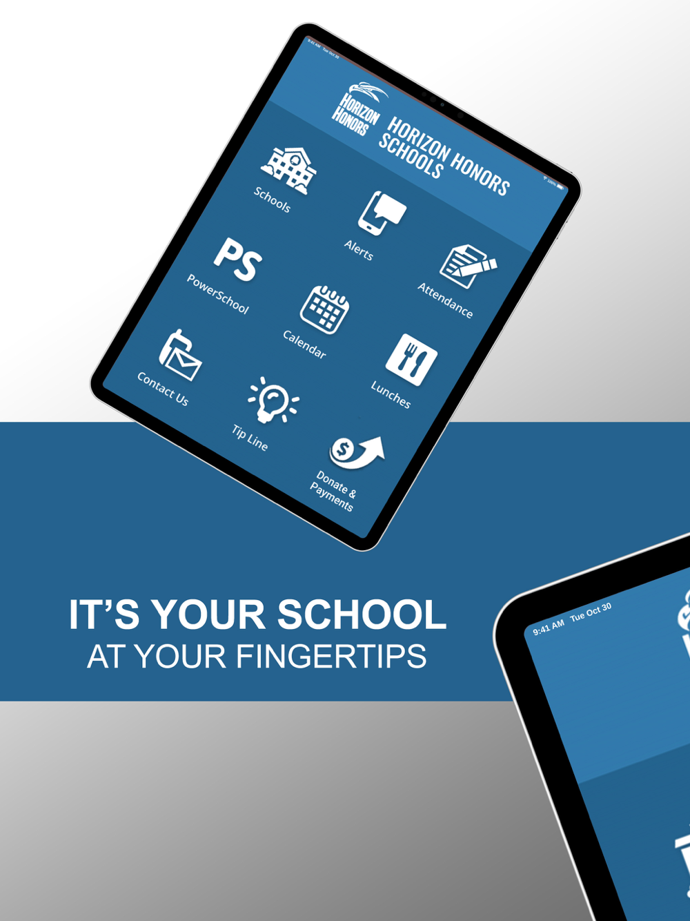With the Horizon Honors mobile app, your school comes alive with the touch of a button. Easily navigate through current news and events or check out the latest updates with social media like Facebook and Twitter. Quickly retrieve school information, lunch info, and more! It’s your school at your fingertips!