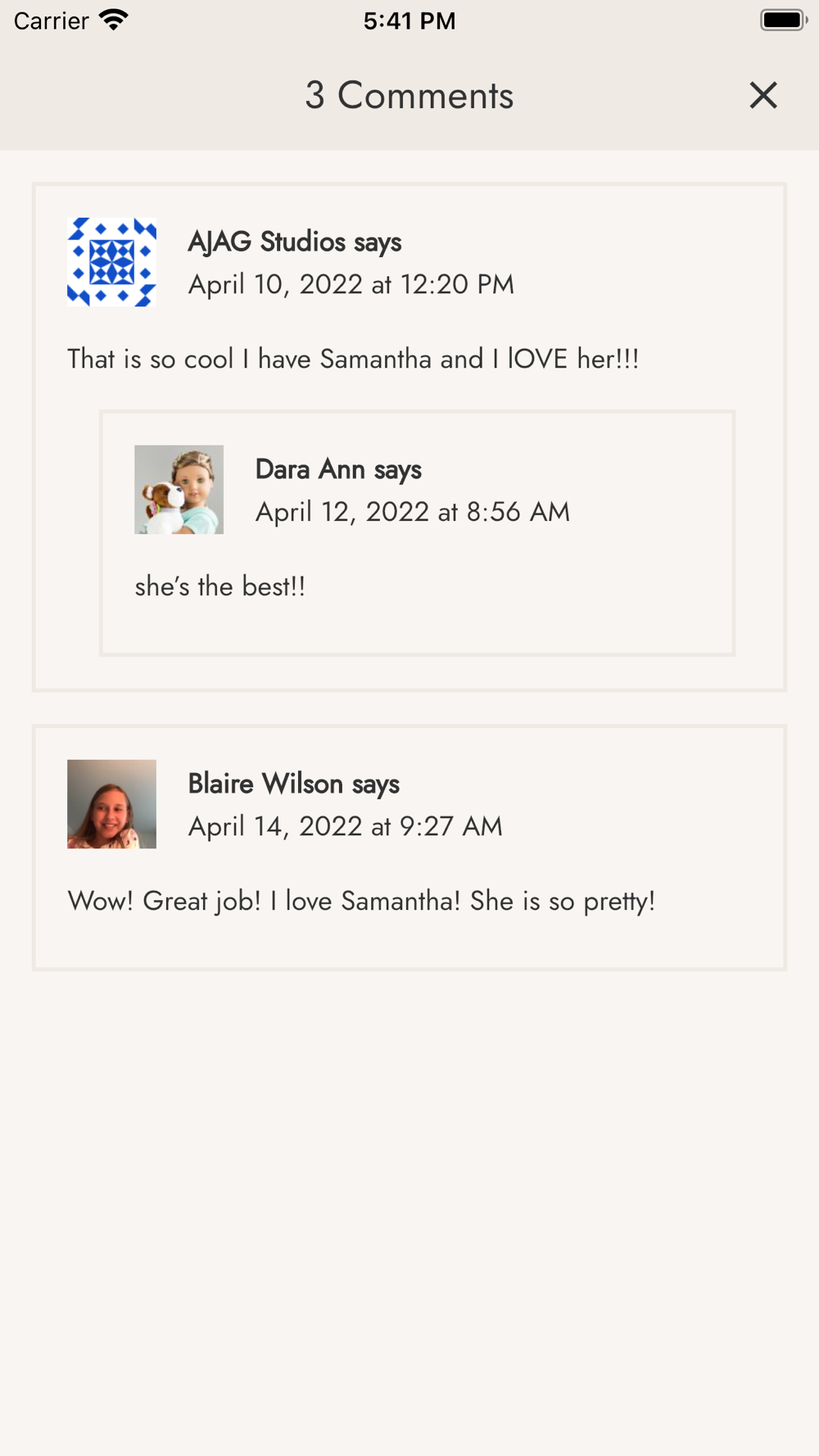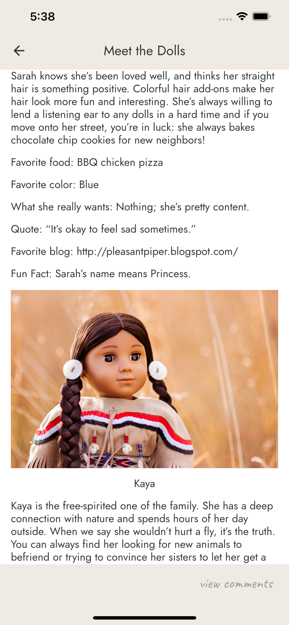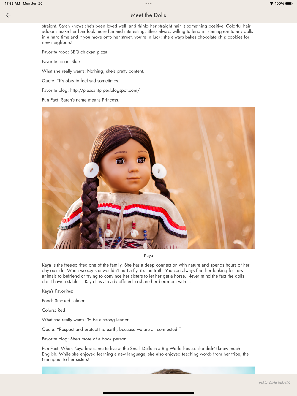 Hi! I'm American Girl Doll Artist, the main blogger here at Small Dolls in a Big World. There is a lot to do in the app! You can meet all 10 of my dolls, and learn about their favorite things. Or, you can read photo stories and product reviews! You can also check out the latest news and product releases.