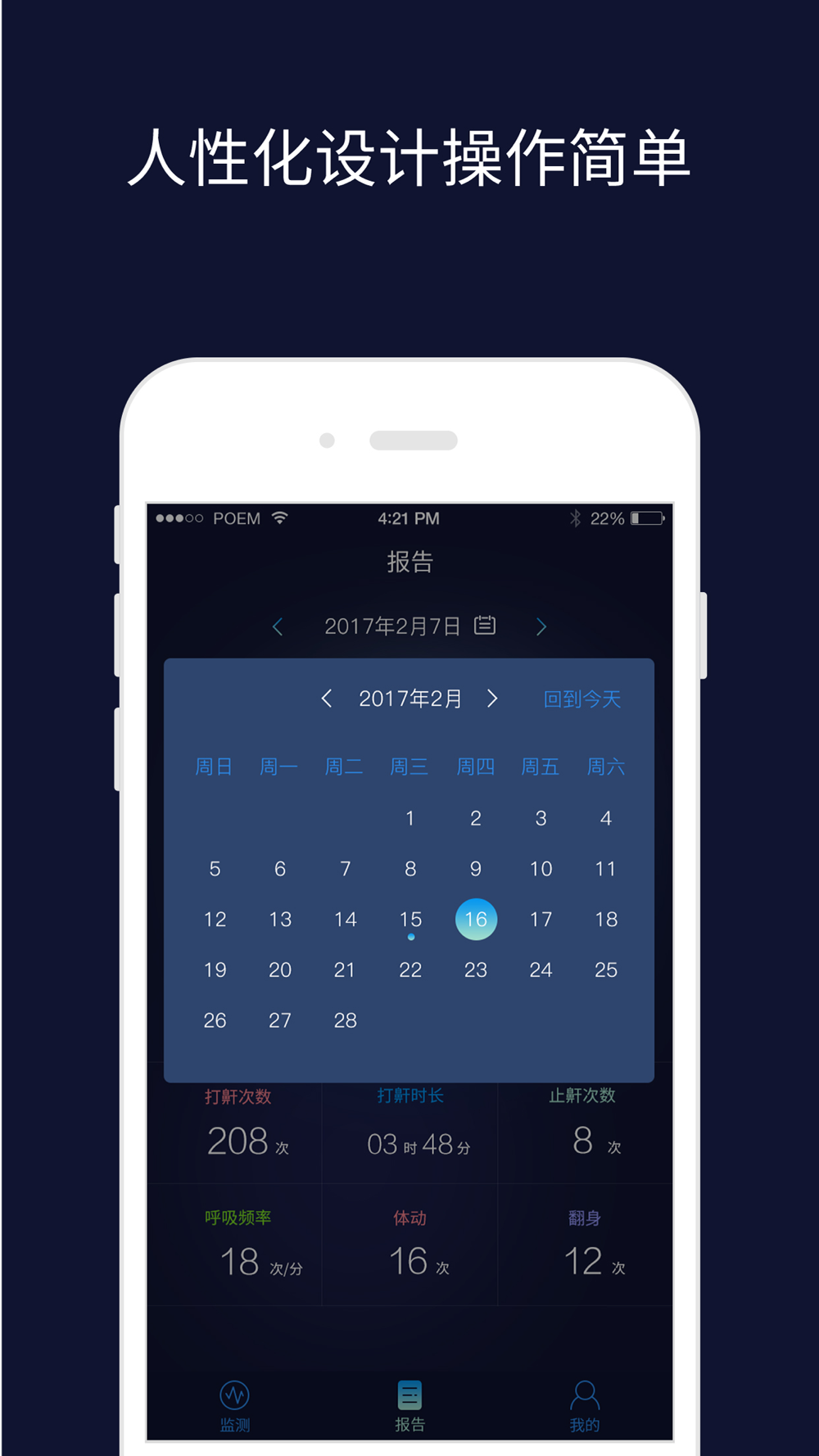 1.手机蓝牙连接枕头,智能检测打鼾数据.