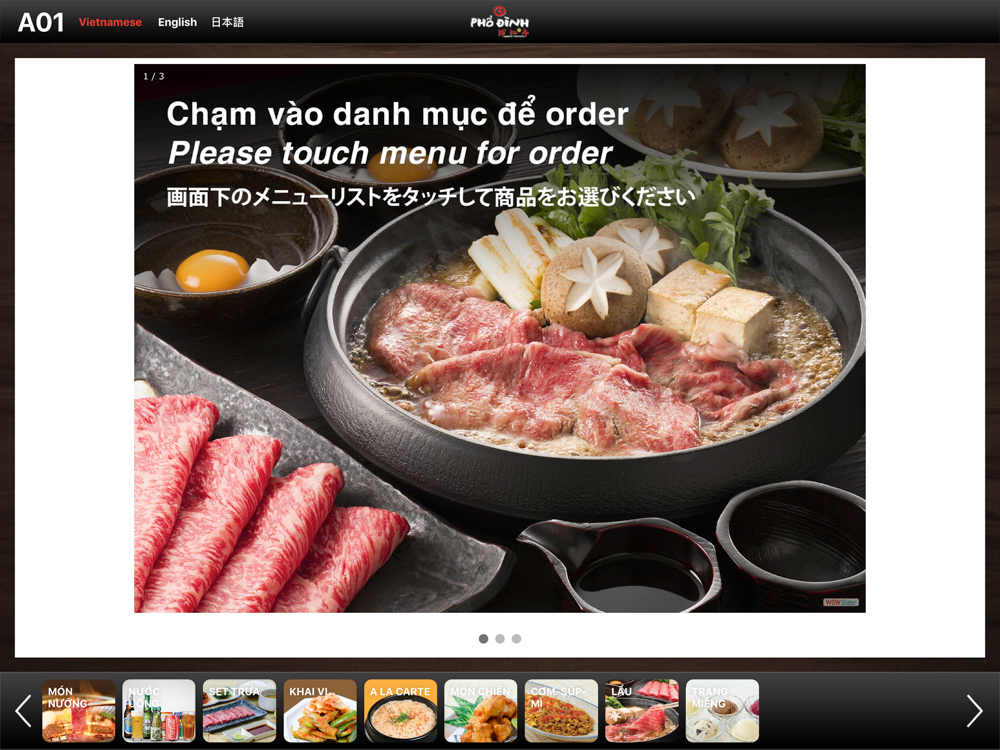 E-Menu system for customer of Pho Dinh - Uratei Restaurant.