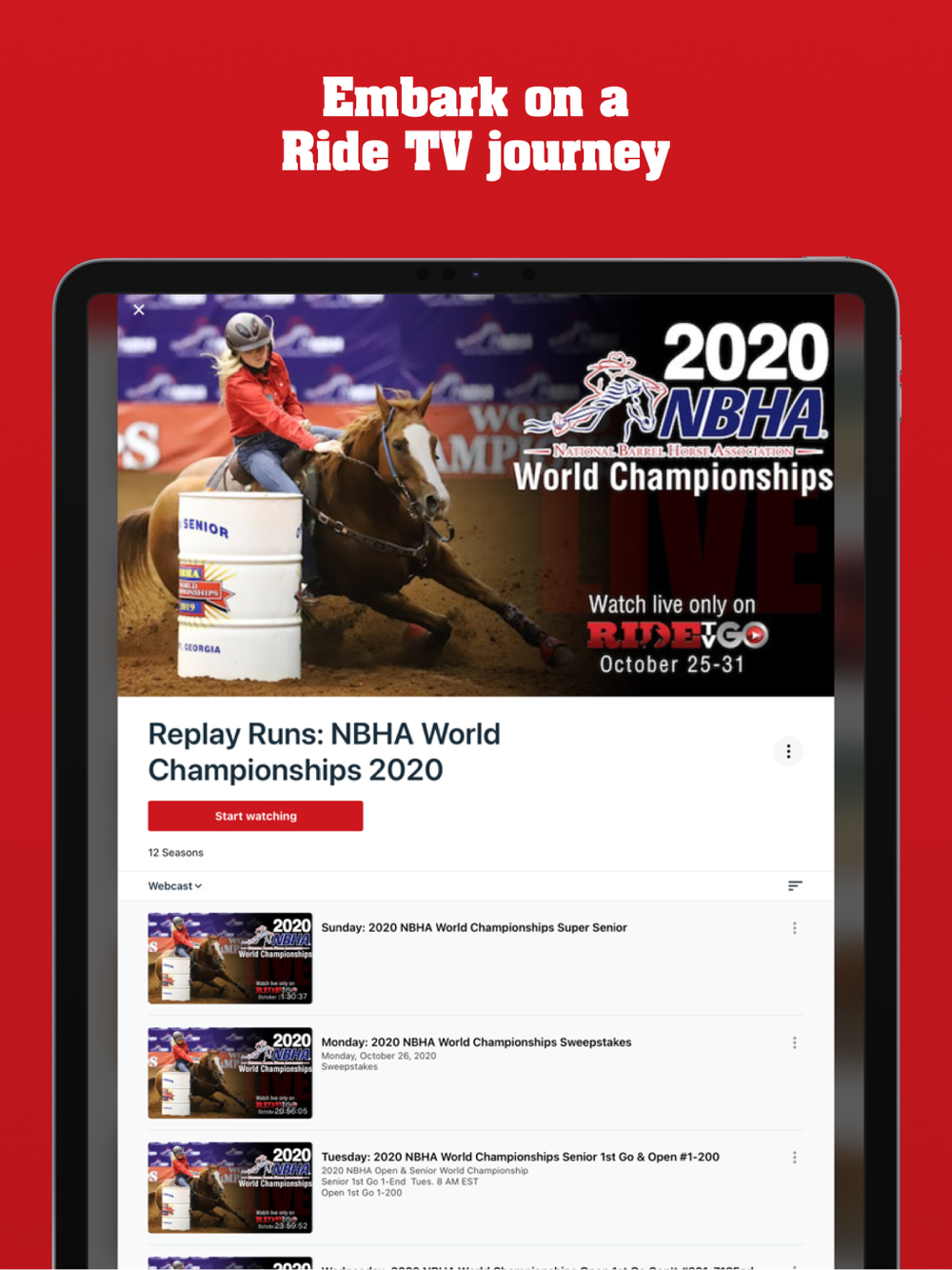 Embark on a Ride TV journey and discover the world of horses like never before! From mini ponies to training with top pros, Ride TV brings the ultimate equine education, entertainment and event coverage content to one platform. Now featuring video from Horse&Rider OnDemand and BarrelRacing.com!