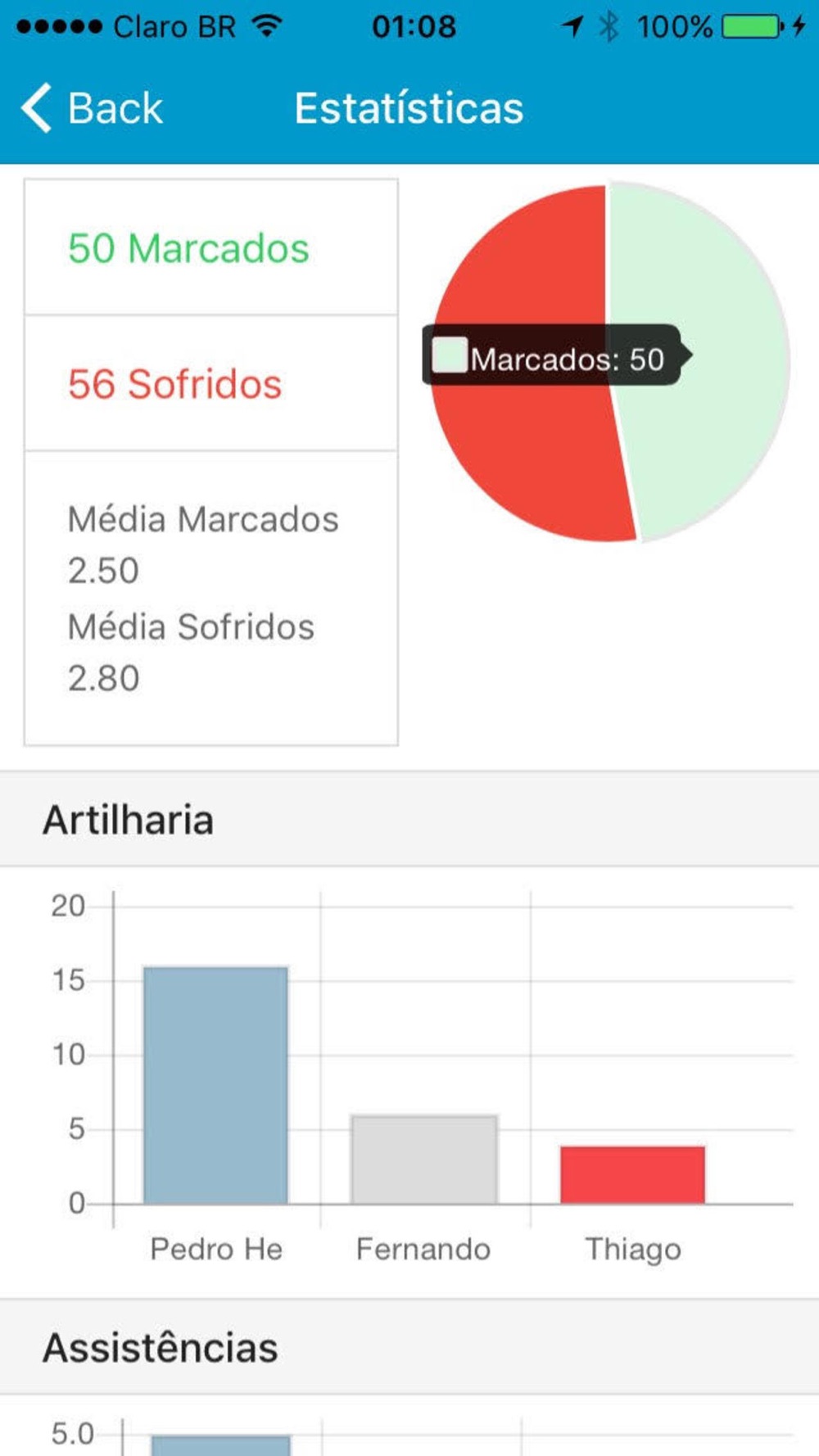 estatísticas, e veja ao final um resumo do andamento da sua equipe ao longo do tempo.