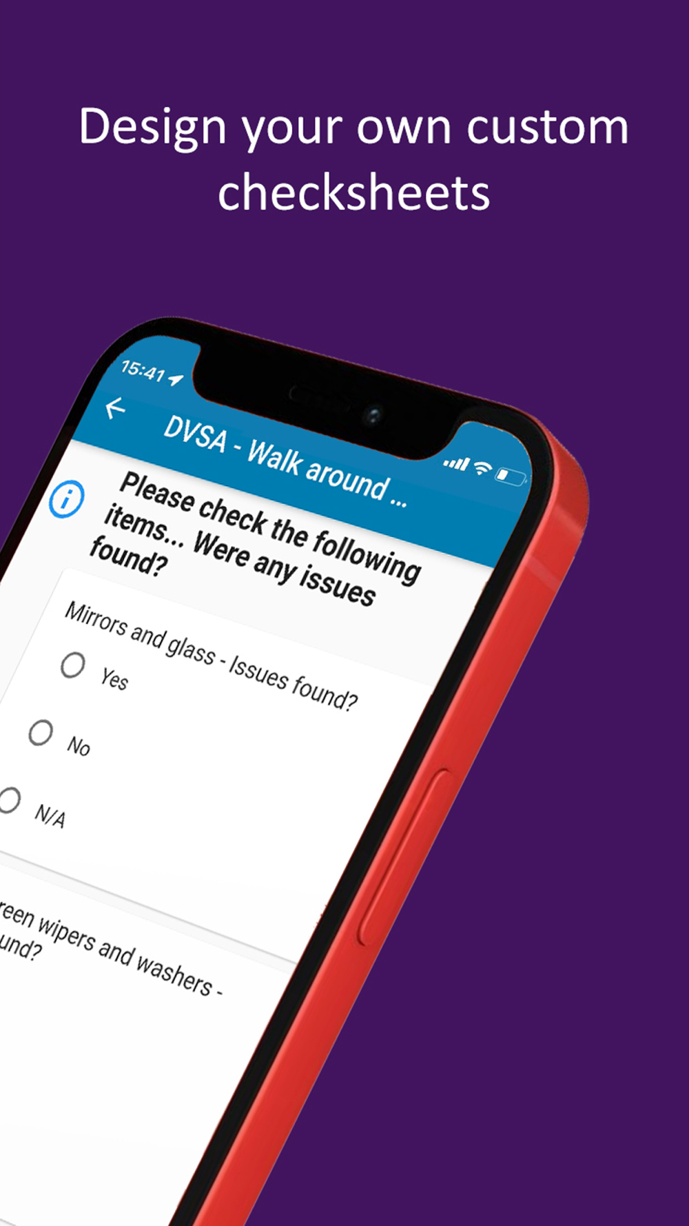 • Asset inspections - Create bespoke checksheets for your drivers to use when checking assets, to ensure the check is relevant to the item.