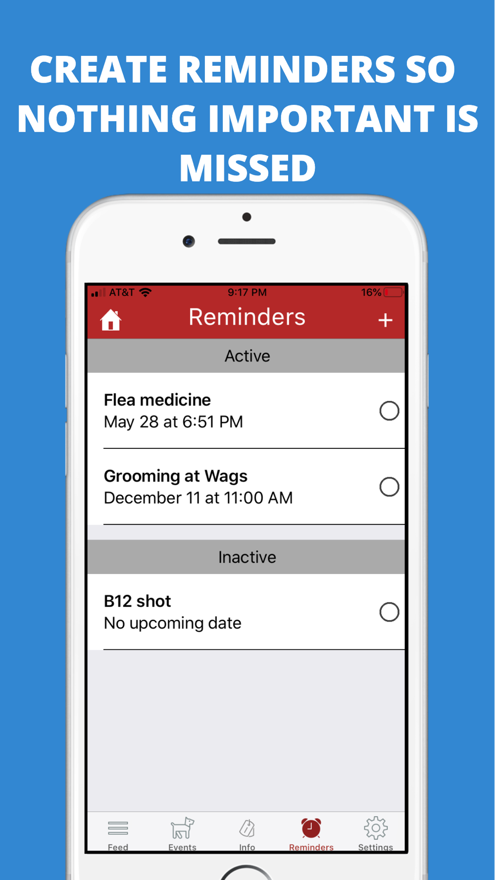 5. Create reminders and alerts so you never forget to take care of your pet.