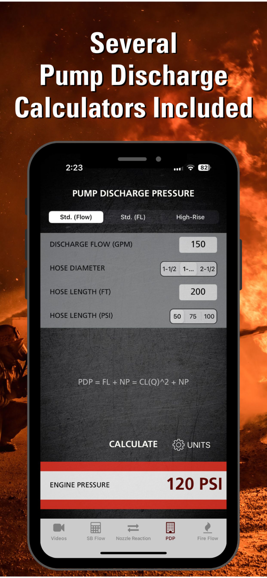 • Pump Discharge Pressure for standard layouts, with ability to input hose coefficient depending on make and inside diameter