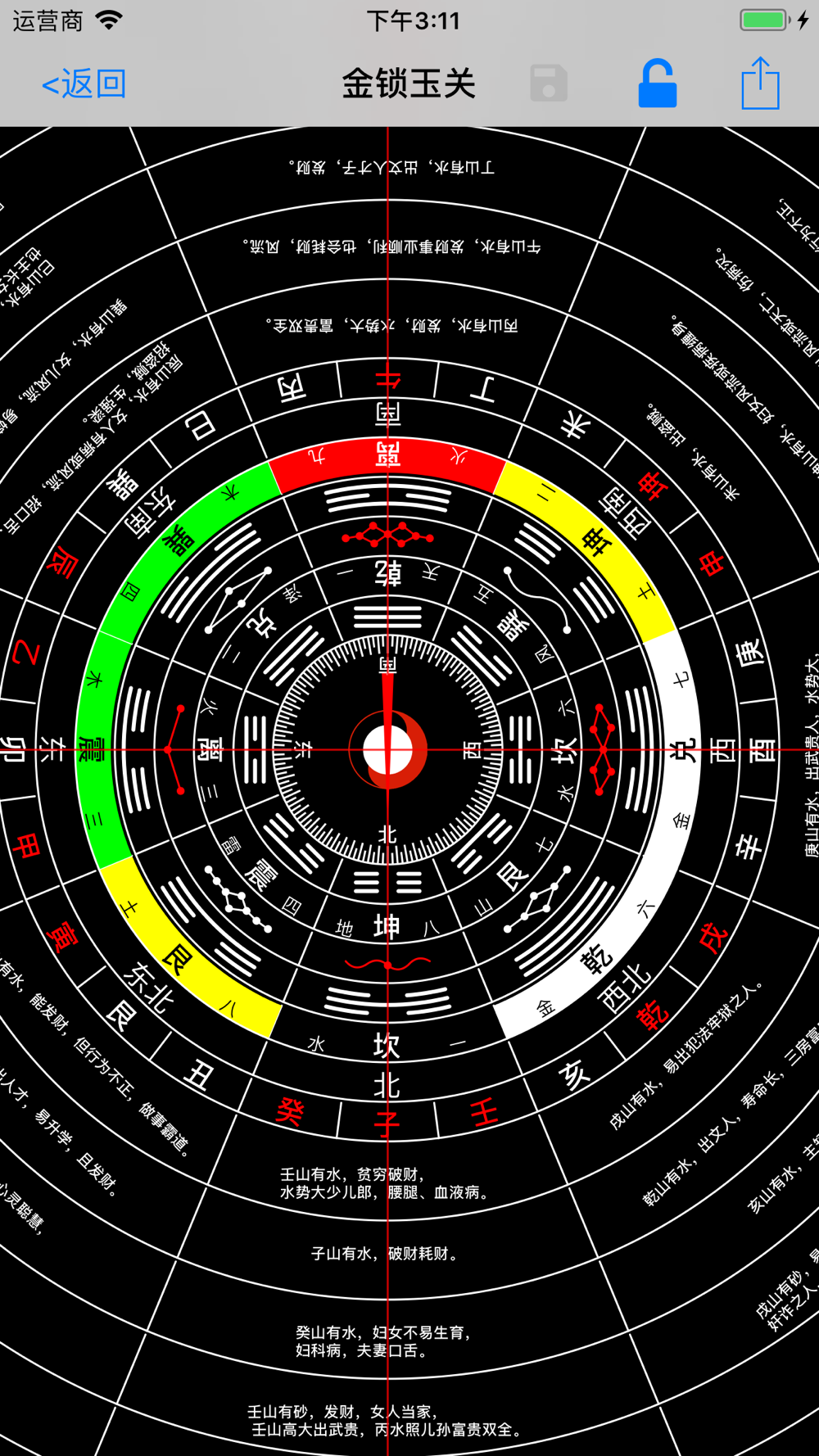 利用手机的定向指北针功能,自动旋转罗盘,支持三元罗盘,三合罗盘,金锁玉关,八宅风水,八宅风水使用相机功能,支持实景分析,辨别风水吉凶。