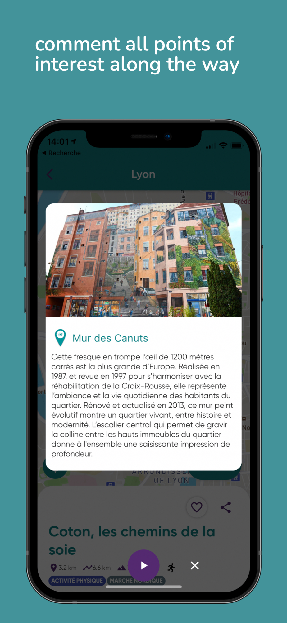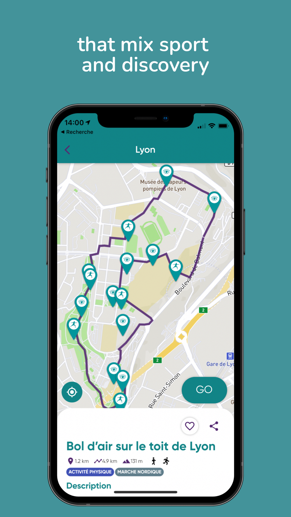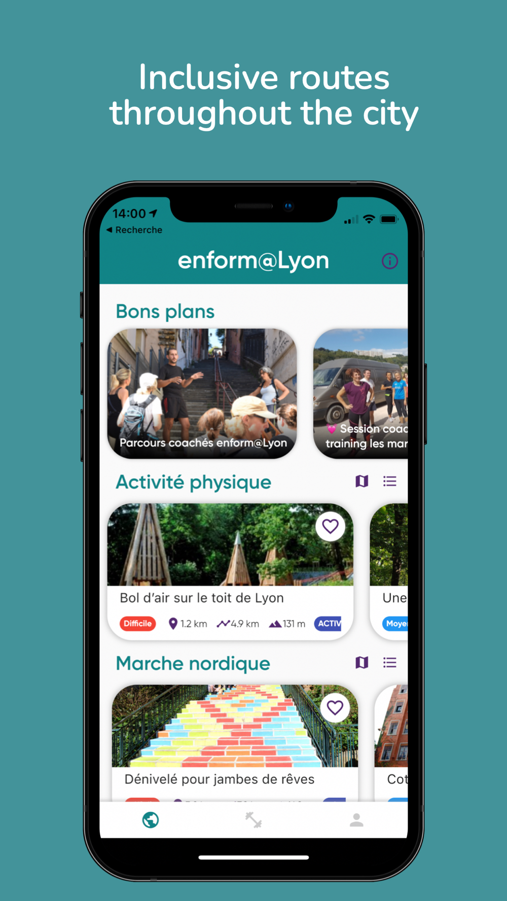 The Enform@lyon app published by the City of Lyon is designed to encourage physical activity while allowing a discovery of the city's cultural heritage. The circuits have been designed by the City of Lyon Sports Department with the assistance of AG2R La Mondiale and rely on the expertise of the Auvergne-Rhône-Alpes Athletics League for the muscle-strengthening programs and the Gadagne Museums for cultural heritage content.