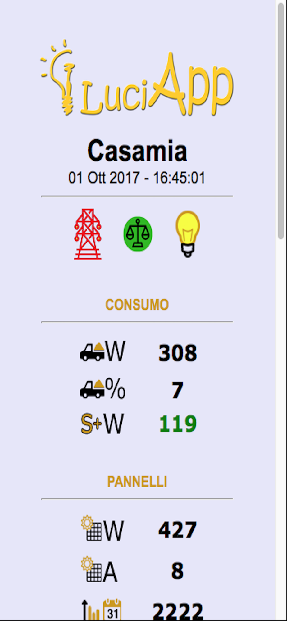 Displaying Daily totals (Production and Consumption).