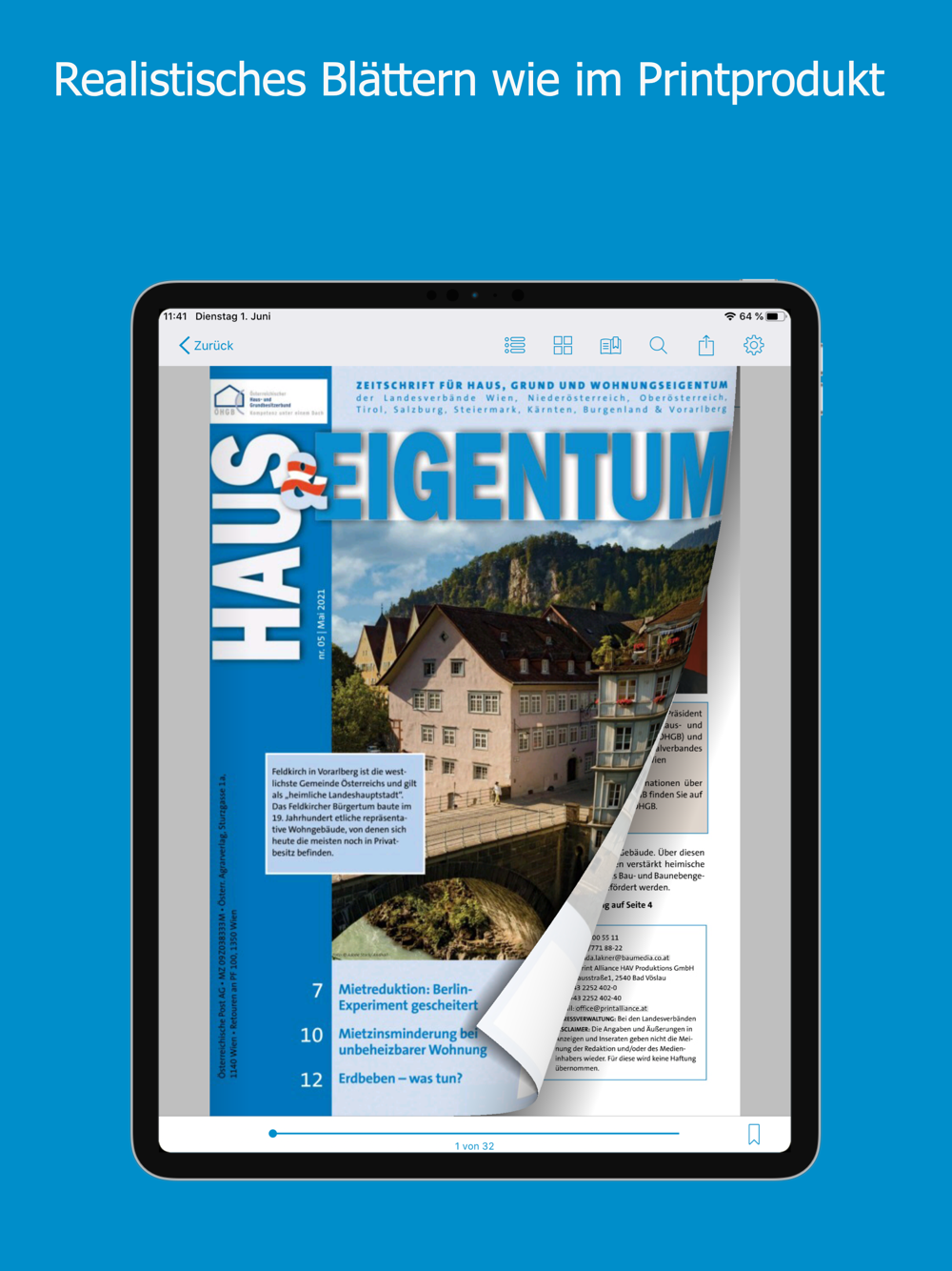 Haus & Eigentum ist die österreichische Zeitschrift für Haus-, Grund- und Wohnungseigentum in Österreich. Unsere Fachautoren und Experten informieren über Wohnrecht, Hausverwaltung, Steuern, Bauen und Sanieren. Sie geben praxisnahe Tipps für Vermieter, Eigentümer und Verwalter und berichten über aktuelle Entwicklungen auf dem Immobiliensektor.