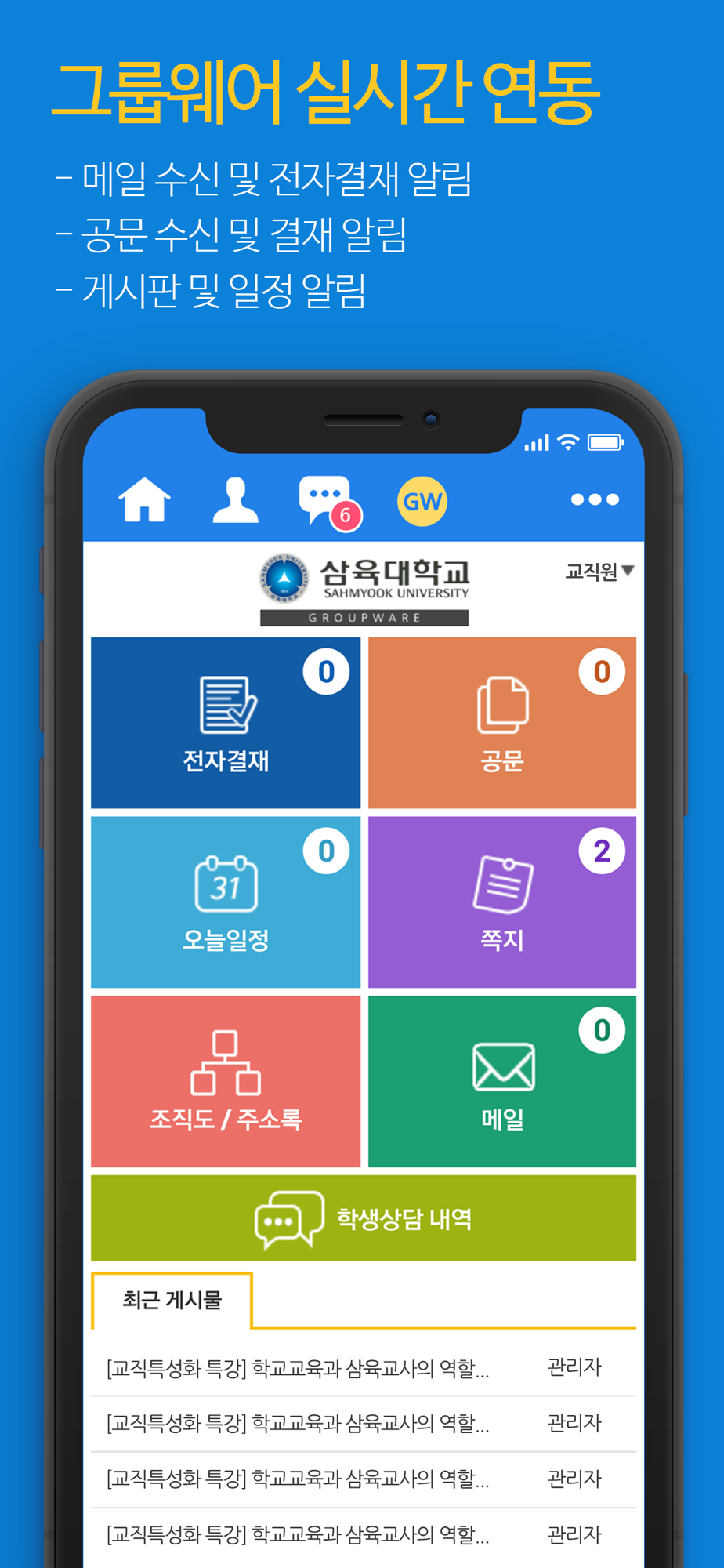 - 메일, 일정, 게시판, 전자결재 알림 기능