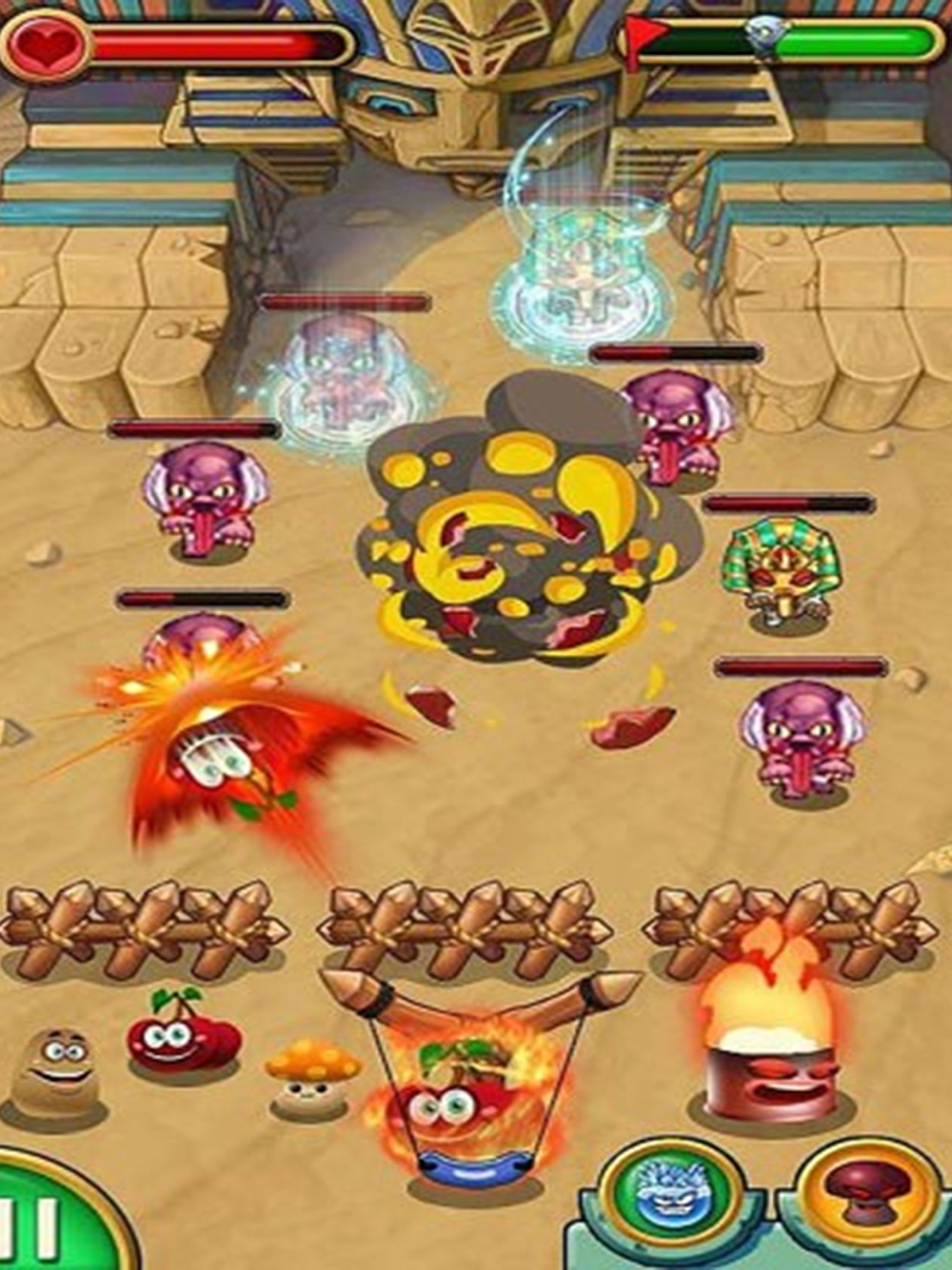 1、向下拉动弹弓上的植物,然后松开手指,会发射植物。