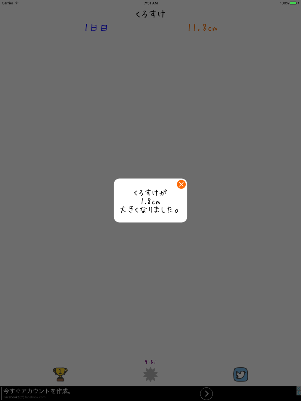 ふわふわの不思議な生き物「くろすけ」を育てるゲームです。