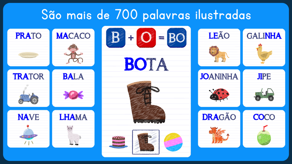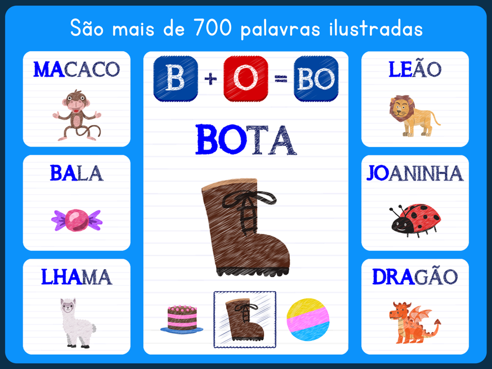 E o que já era incrível agora está muito mais completo! São vários novos menus e atividades novas, incluindo o menu "Conheça o alfabeto", que introduz o as letras e a separação de vogais e consoantes, que torna o aprendizado das sílabas muito mais fácil.