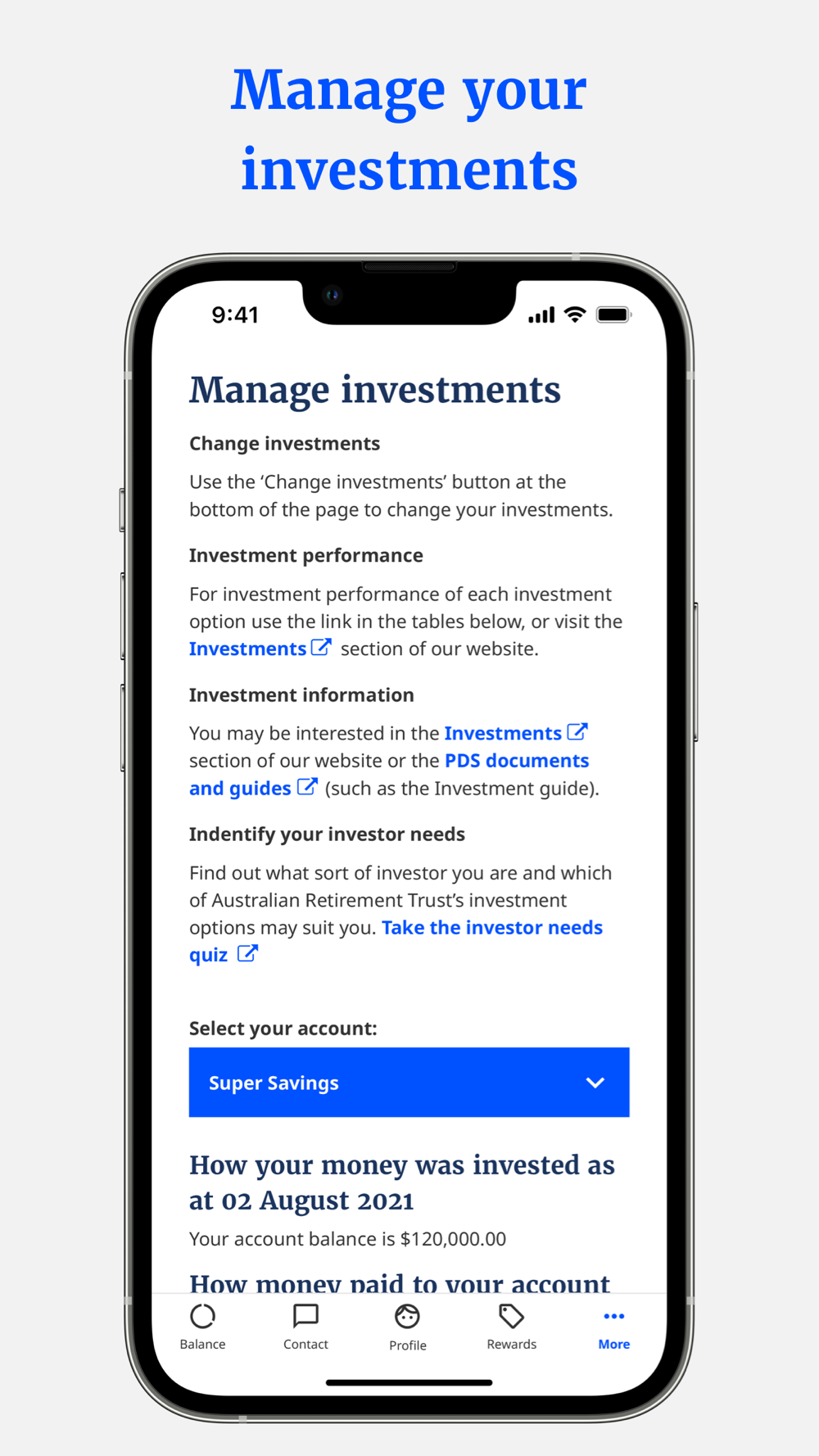 Manage your superannuation investments, details and so much more straight from your device.
