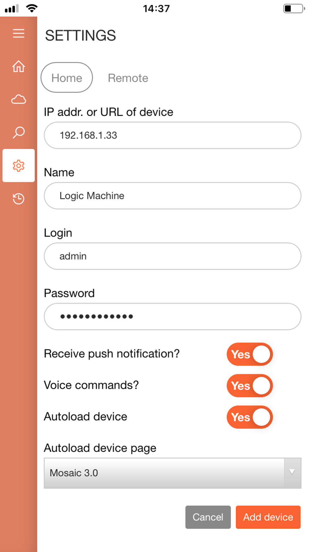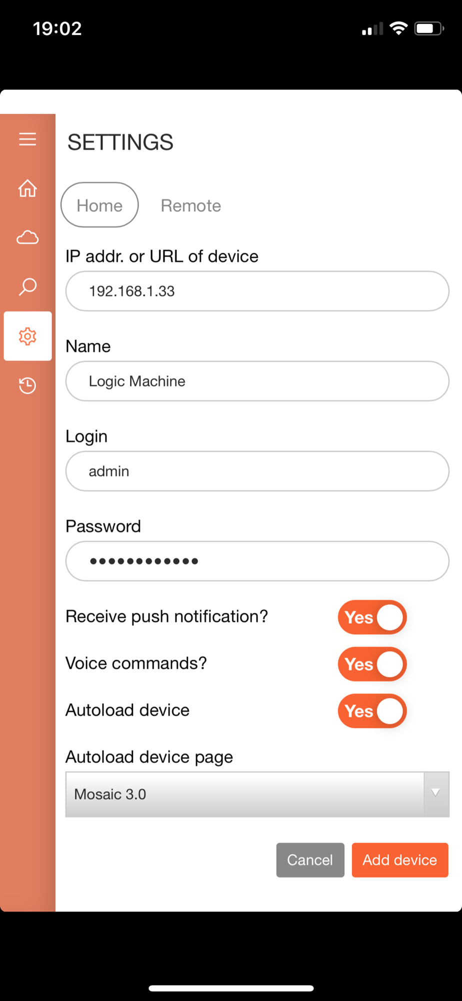 - Remote connection allows to log in to Logic Machine Cloud. Secure and encrypted connection to control your home remotely.