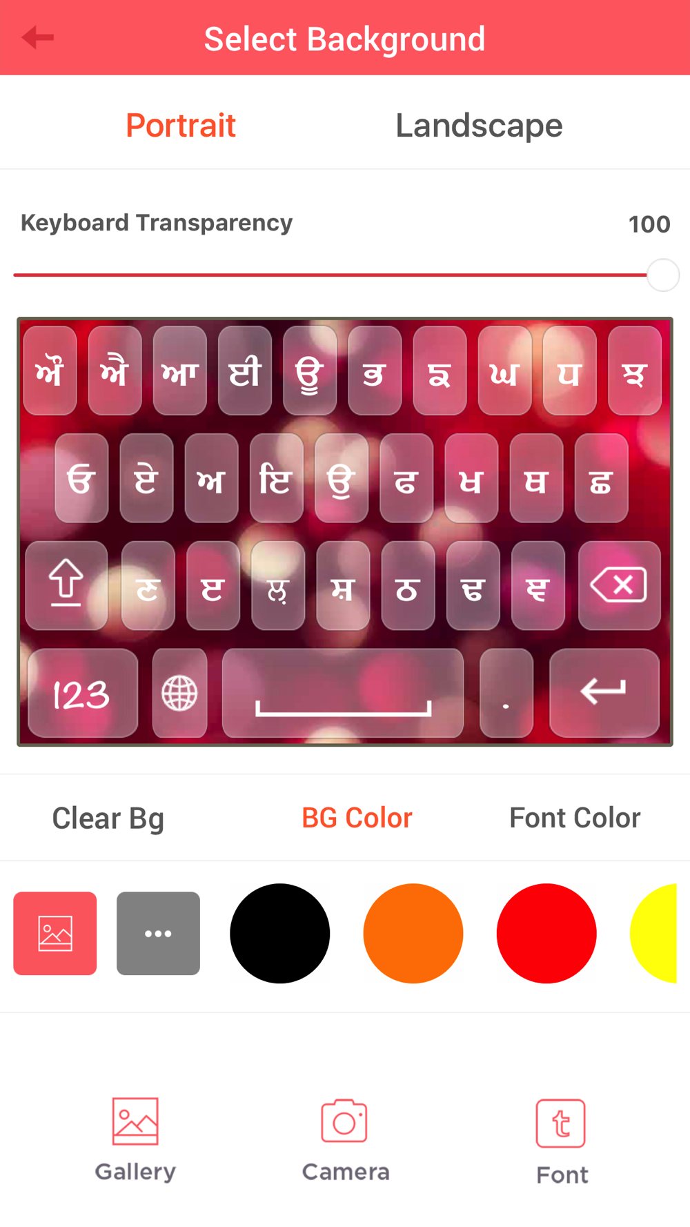 -> Font Color provides facility to set color in font of Punjabi keyboard input.