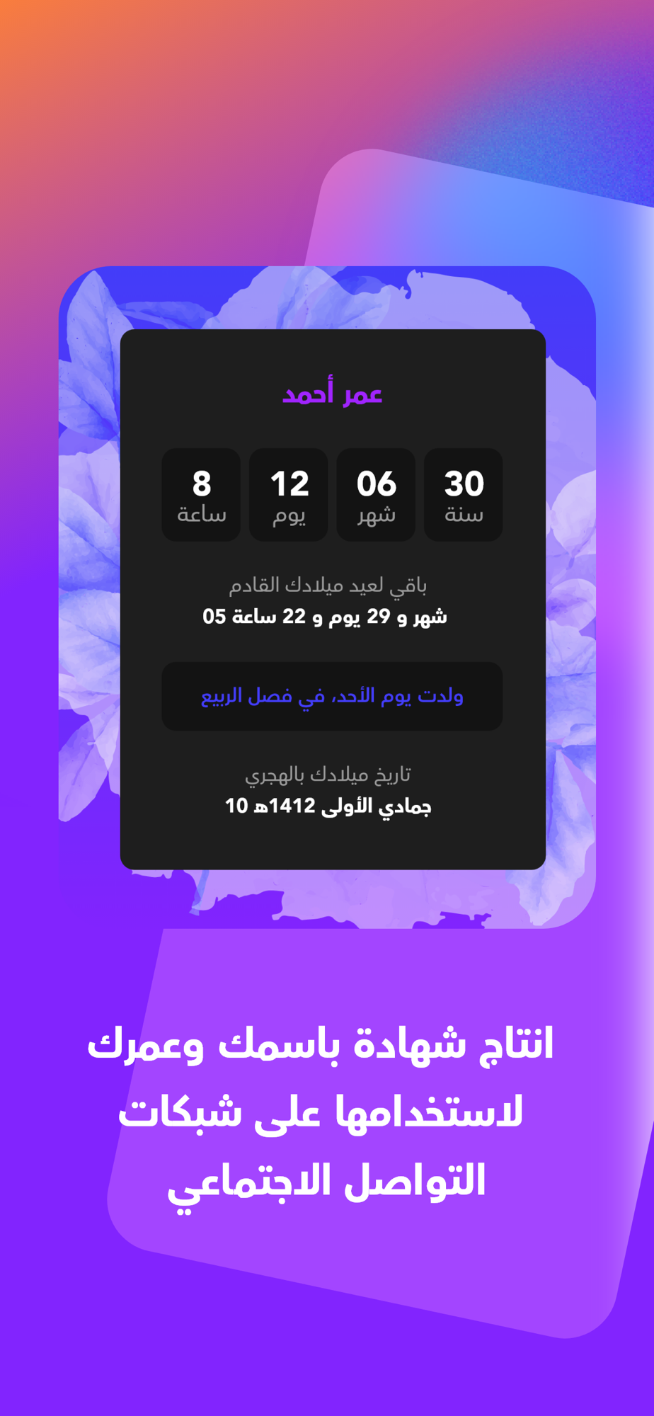 شارك صورة لمعلومات العمر لديك وعدد الايام المتبقي