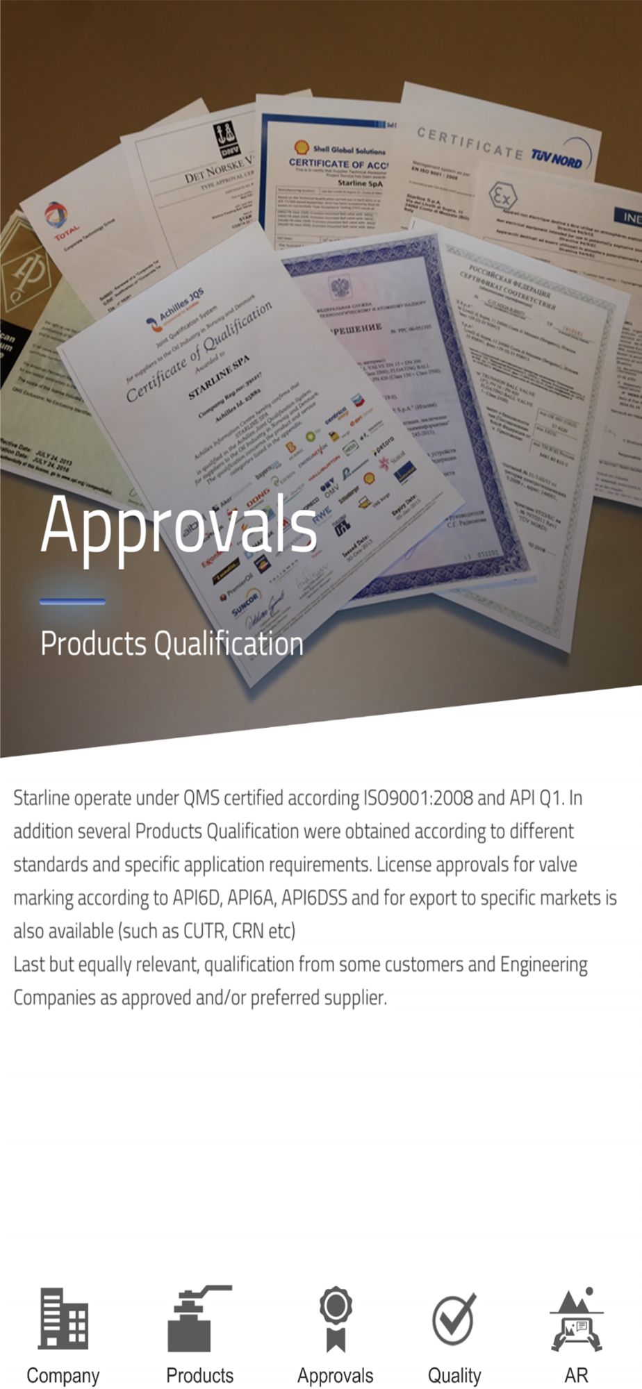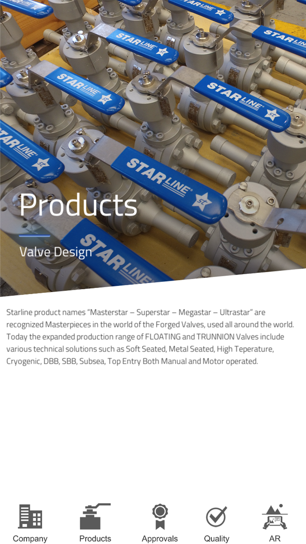 STARLINE FORGED STEEL BALL VALVES App allows to immediately access all Company and Product information as well as access to the AR (Augmented Reality) experience.