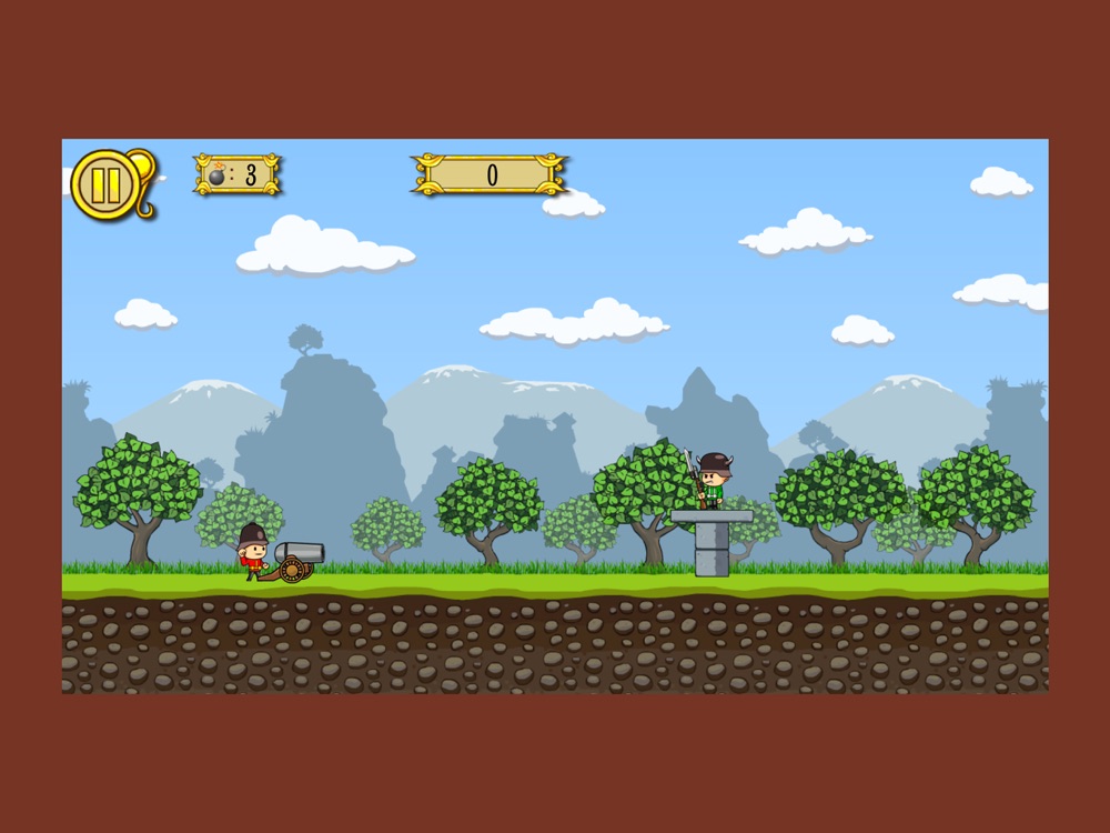 士兵,你的家园正被敌人侵略着!现在你只要调整好大炮的角度和力度就能打倒对面的敌人就可以了,快来保护你出生的家园和家园里的亲人们吧!