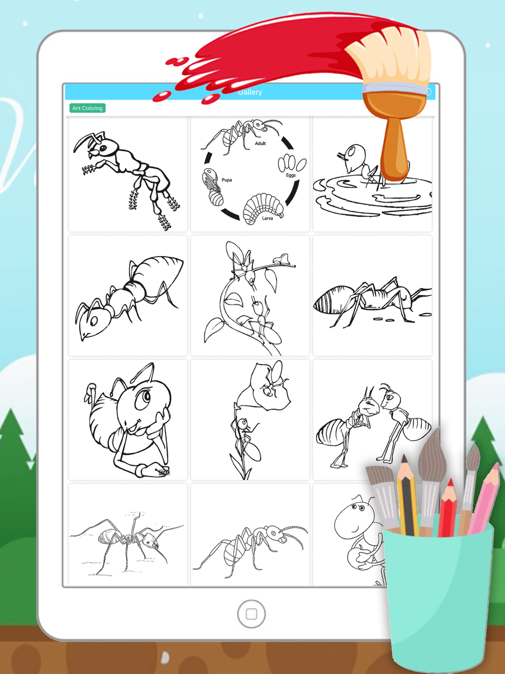 Ant Coloring Page Drawings Book for kids Game for children is the best free offline simple book coloring cartoon game. The kids can draw and paint animals. human and cartoon. This game help kids learn to draw with fingers. promote imagination. concentration. thinking. drawing and picture in their minds.