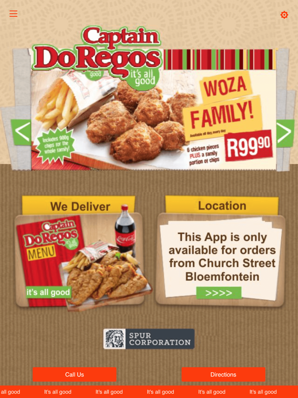 Use this app to order from Captain DoRegos in Church Street, Bloemfontein South Africa.