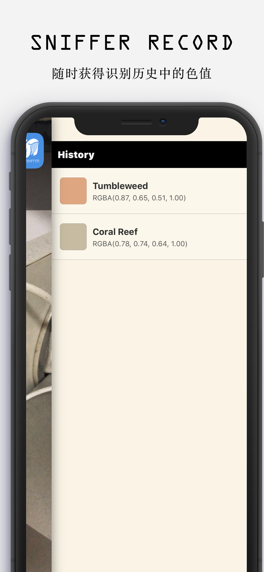 In addition, when you click on the history of color recognition in the color of the identification, the current color will automatically switch to the color, you can view the color of the information or paste the color of the color code.