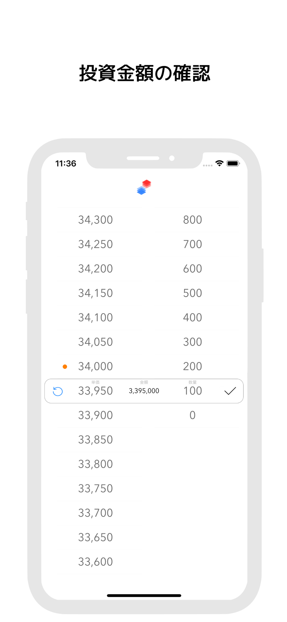単価ベースでは、呼値の単位で一覧表示も可能です。