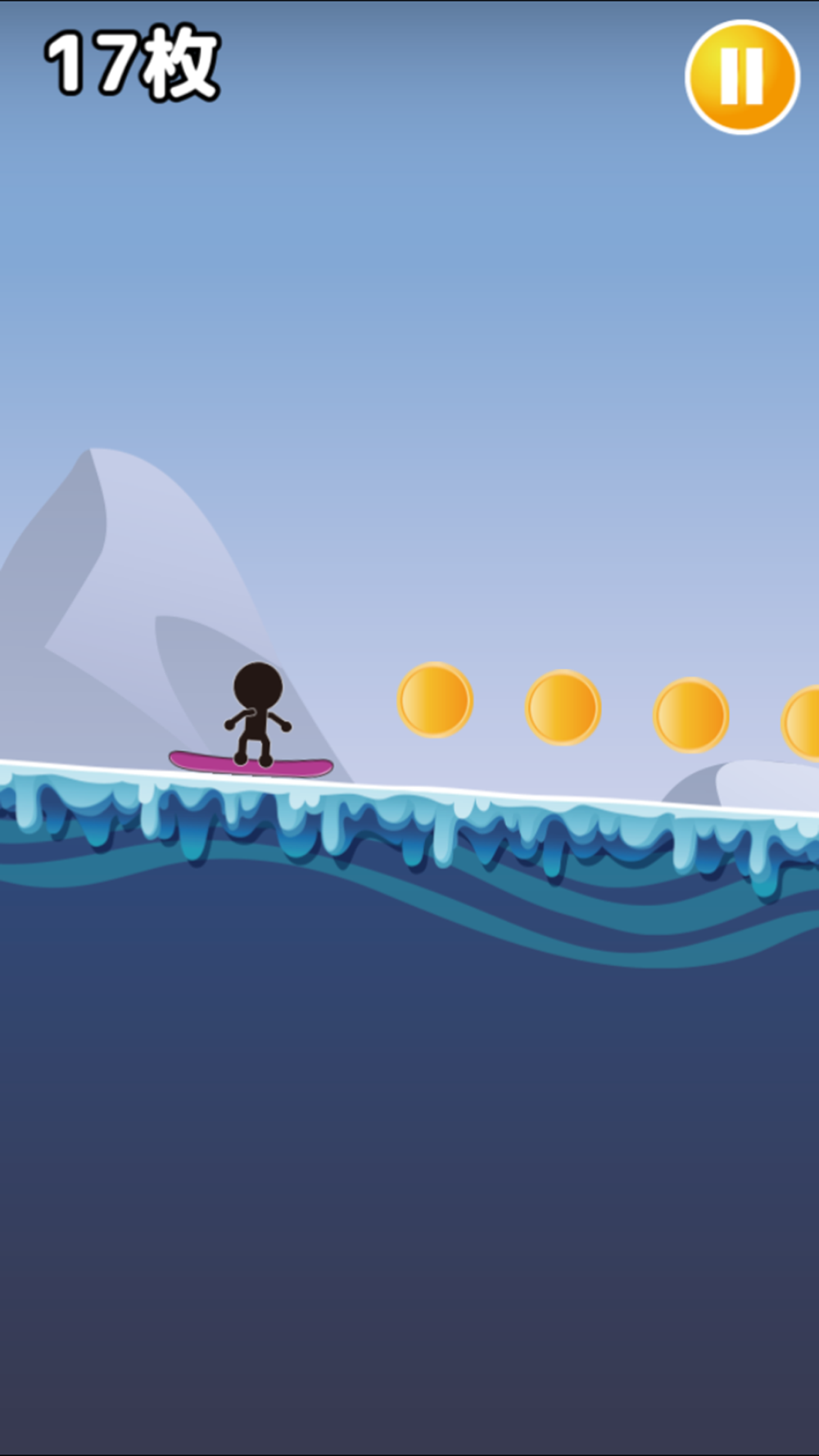 加速度的にボードが雪山を滑り落ちていく物理ゲームで、そのスピード感は