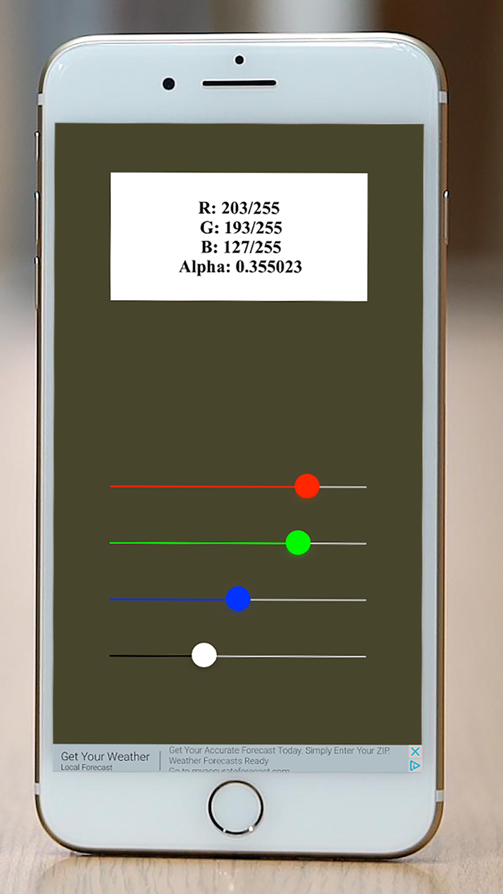 This is an application designed for choose the color of RGB. If you designer this is app totally for you. USE it and Enjoy...