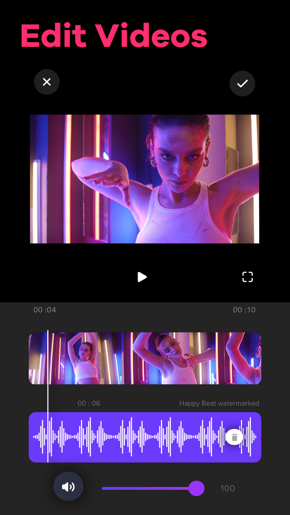 Video Editor app for iPhone and iPad simplifies the entire process of adding music to your videos. Grab videos directly from your camera or gallery and cut out unwanted moments using the video trimmer feature. You can add tracks to any videos by recording the audio yourself or choosing songs from iTunes Music. Key Features of Video Editor: - Trim videos in just a few steps - 3 ways to add music to videos: in-app tracks, iTunes Music, and by recording your own audios - Trim audio tracks as necessary after adding - Adjust volume, loop audio, use fade-in, and fade-out option - Share on social media platforms like Instagram, Facebook, etc. - No watermark Terms of Use: https://www.twinbit.net/tc/addmusic/terms.php Privacy Policy: https://www.twinbit.net/tc/addmusic/privacy.php Disclaimer: This app is free to download, but you will be required to make a one-time purchase to access the app's full functionality.