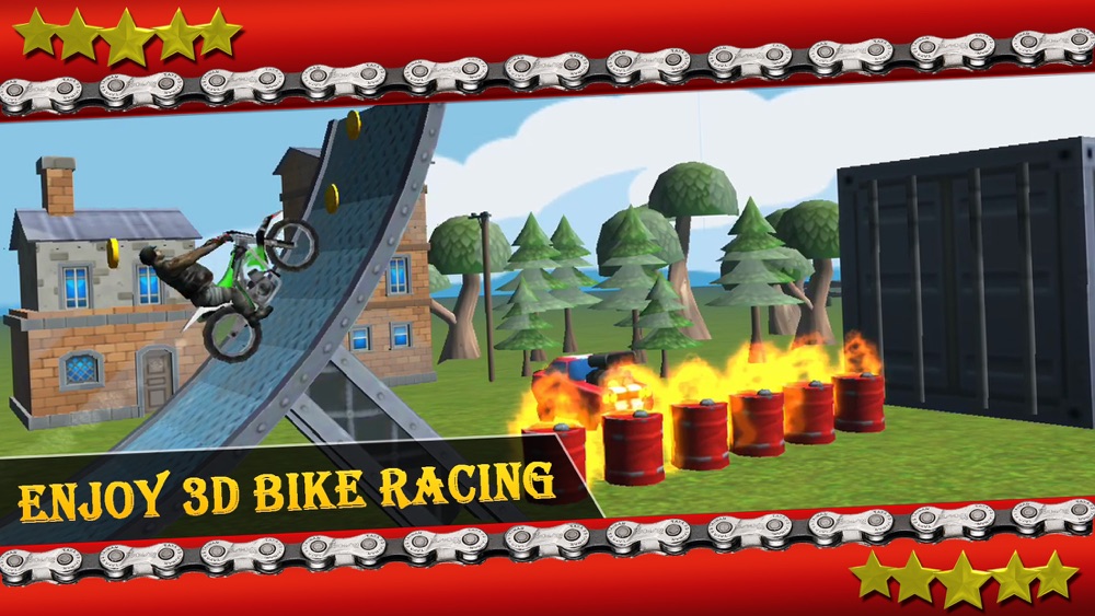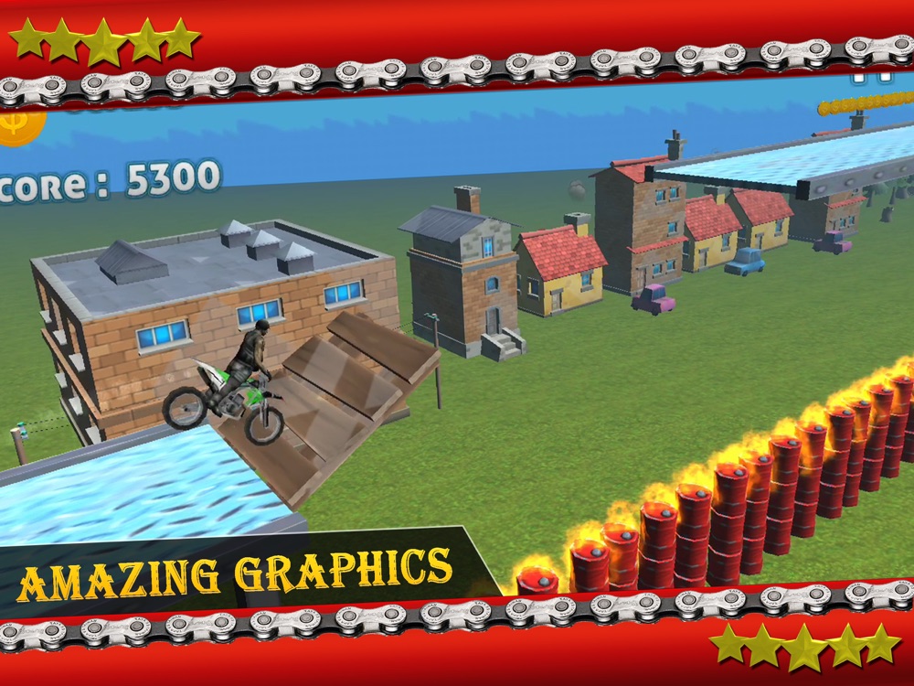 You are feeling bore, want to do something different then Motocross Extreme Stunts game is for you. Start your bike engine and get ready for the thrilling stunt bike racing. Are you ready for the death driving, dodge the all risky obstacles, dangerous hills, realistic landscape, ramps, tyre and circles which you face during series of challenges. Kill your time with playing fast road bike with enjoyable environment, like beach and seaside. If you like dirt bike, motorcycle games, motorbike games, motocross beach jumping, motocross stunts games, motocross extreme bike stunts, motocross trial extreme stunts then you will love to play motocross extreme stunts. Have you ever dreamed of performing stunt bike racing? This game is especially for those who are extremely found of real stunt bike racing extreme stunts game experience the real thrill and adventure of 3D stunts. Most addictive and entertaining game that will enhance player's interest. A crazy bike racing game, in which you will do death driving to face challenging by other fast Road Bikes.