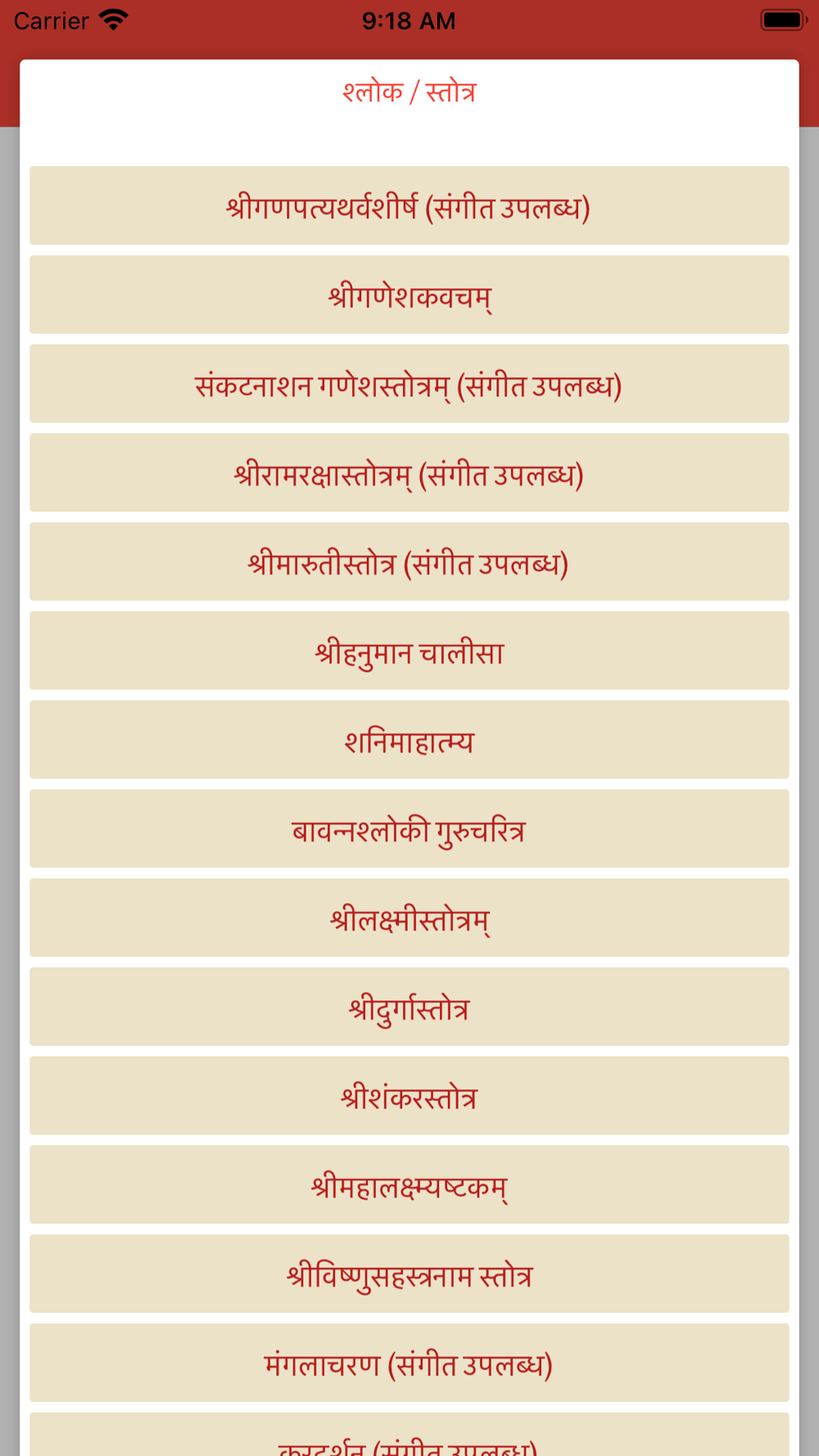* Shloka / stotra (Manache Shlok, Sri Sukta, Shani Mahatmya, Bavanna Shloki Gurucharitra, Ganpati Atharvashirsha, Ganesh stotra, Ramaraksha stotra, Maruti stotra, Hanuman Chalisa, Shubhankaroti, NavGravh stotra, Lakshmi stotra…)